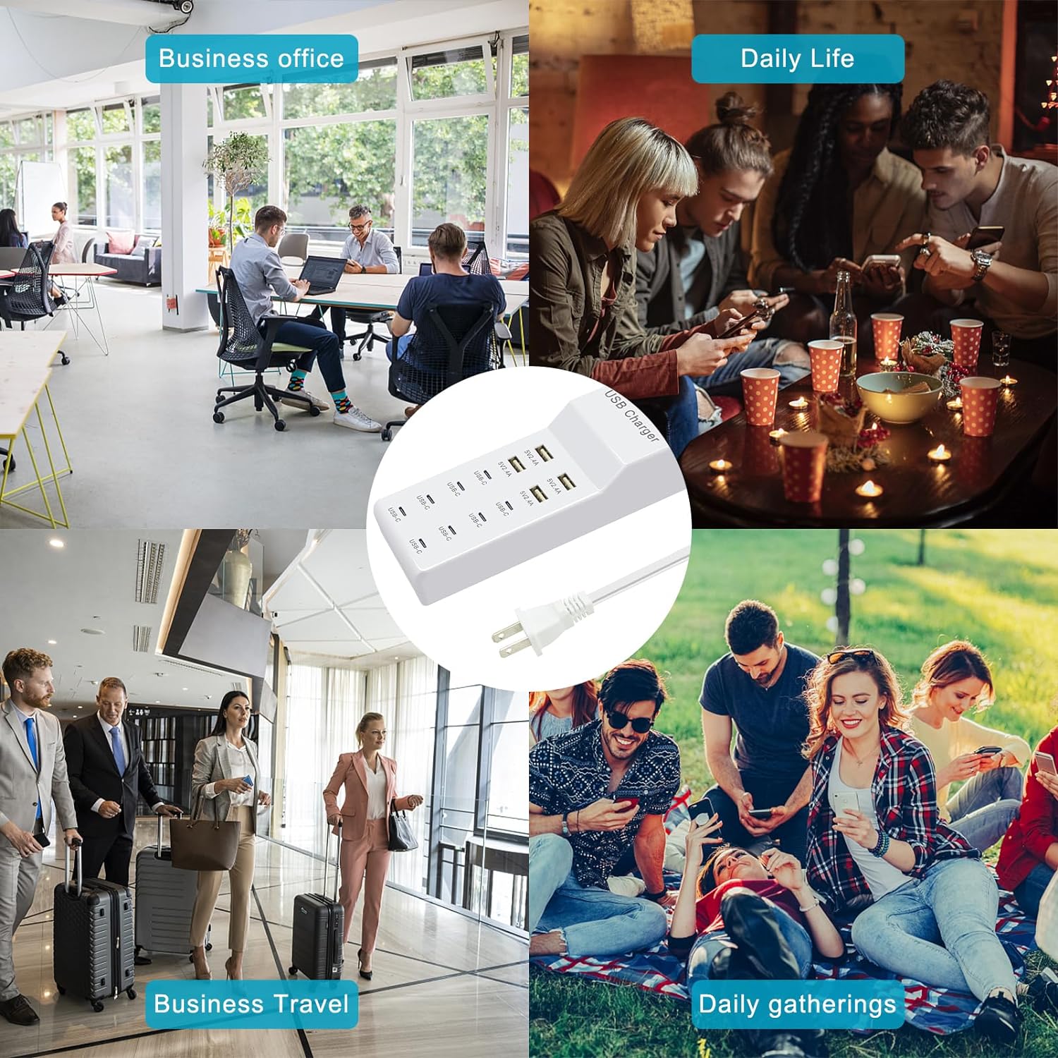 - Lightweight design: The compact design of the USB hub usb charger block multiple ports provides a convenient power distribution method for workbenches and floor standing applications, making it very suitable for desktop applications such as home, school, office, gatherings, and tourism. The lightweight design makes it easy to carry.