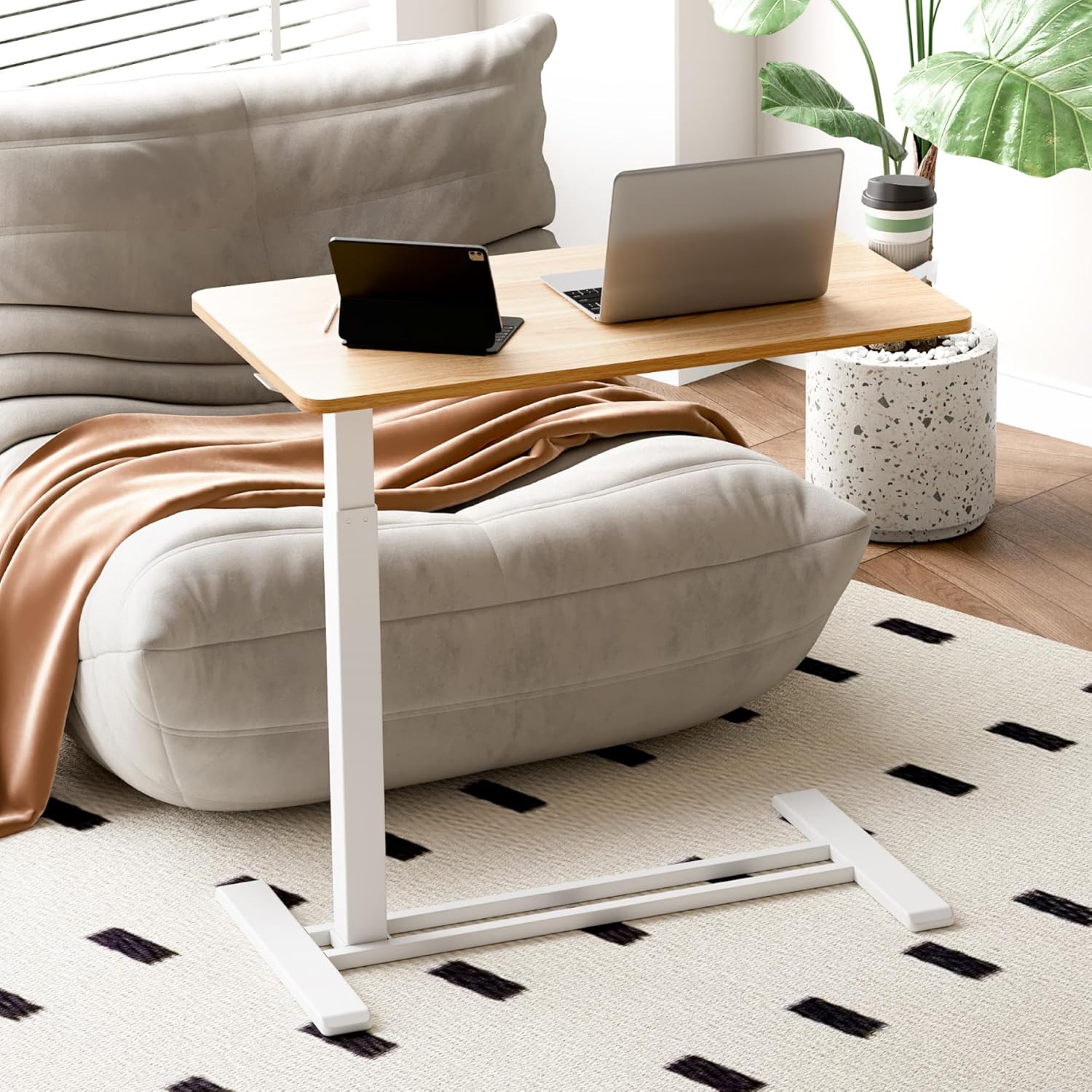 - Hidden Casters-Featuring 4 hidden casters, this overbed beside table glides smoothly for effortless maneuverability. Its low-profile base fits under furniture as low as 1.2", making it a space-saving portable workstation perfect for home or office use.