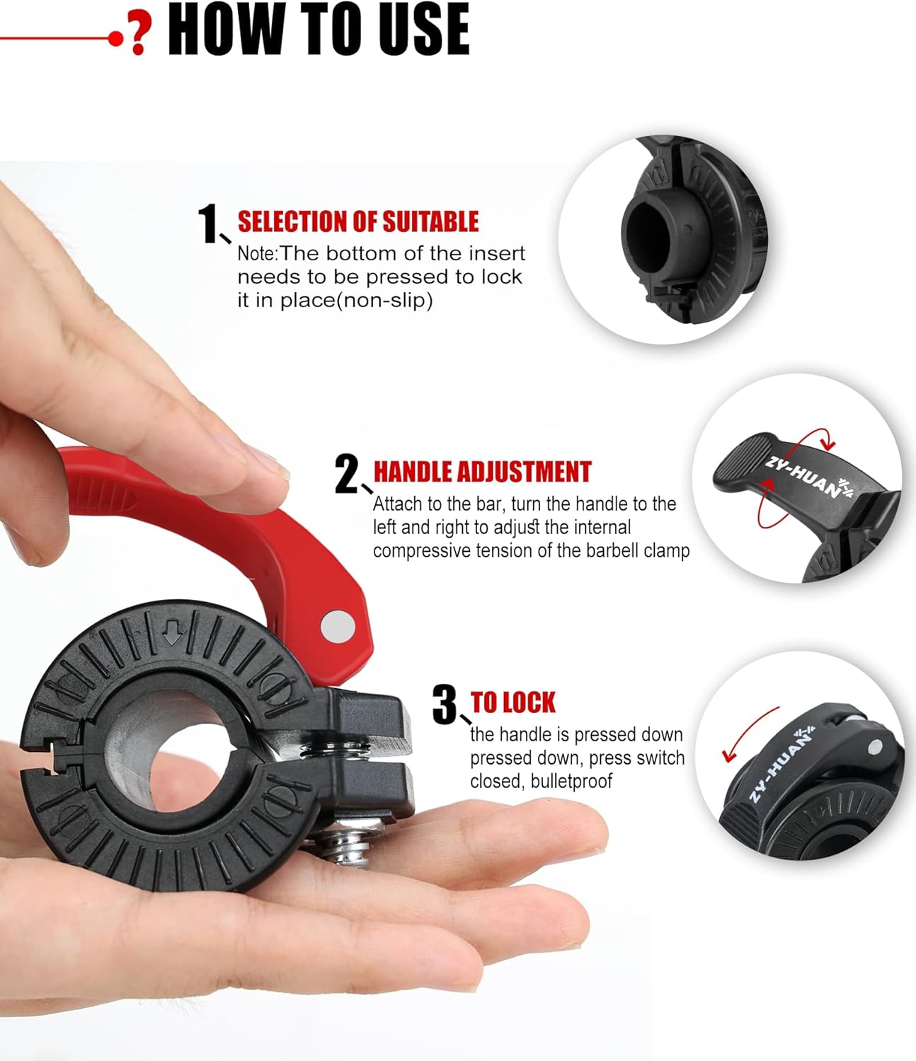 • Multiple Sizes: Our barbell clips 1 inch accessories have been upgraded to precision per millimeter: 23MM, 24MM, 25.4MM, 27MM, 28MM, and 30MM, meeting your various size needs. The handle can adjust its elasticity by itself, which is more secure than traditional spring clips and effectively prevents the barbell from falling.
