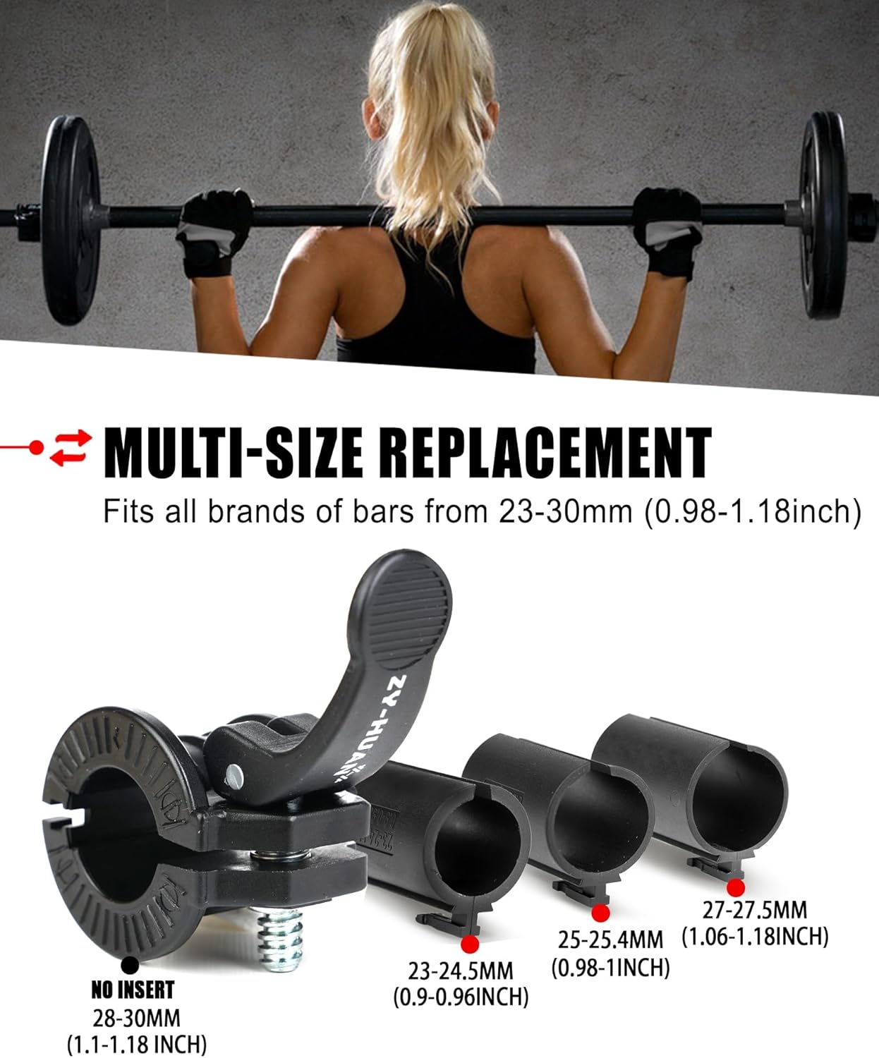 Pro Barbell Clips 1 inch Barbell Clamps 0.9-1.18inch Quick Release Weight Clips for Bars Multi-Size Adjustable Olympic Barbell Clamps