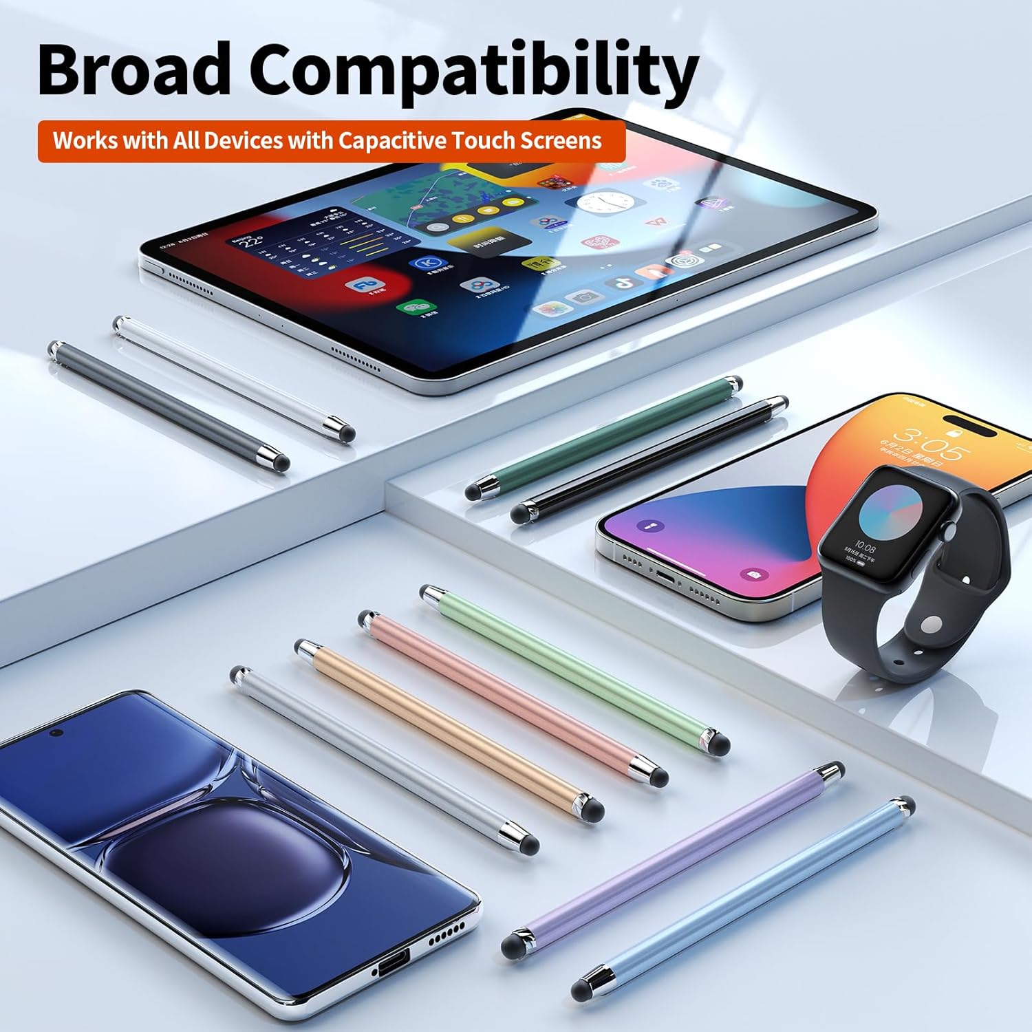 - 【Wide Compatibility】Universal styluses for use with all touch screen devices including smartphones, Apple iPad/ iPhone/ iPod/ Android tablets and other capacitive touch screen devices. You can use it like a real pen.
