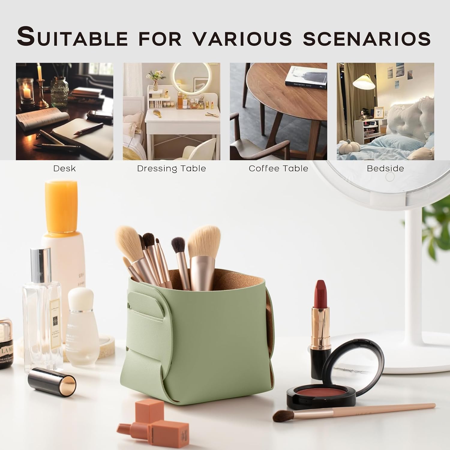 HOMIEAZICOZI 2-Pack Cork Leather Desk Accessories Storage - Pencil Pen Holder - Makeup Brush Holder Organizer - Stylish Addition to Home Decor (Light Green)