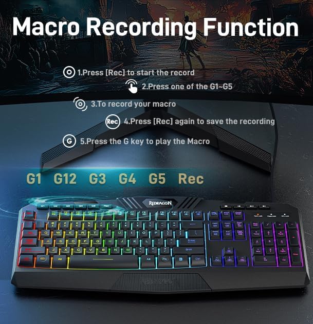 - 【RGB Keyboard and Mouse】The gaming keyboard has 6 RGB backlit effects, and the mouse has 10 RGB lighting modes that let you immersed in the gaming world. The lighting effects can be edited by software (download on redragon.com)