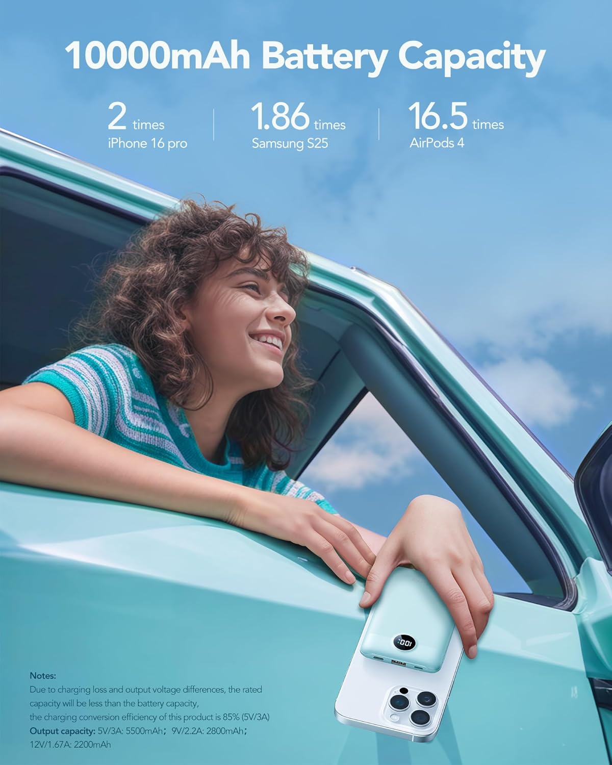 - [22.5W Super Fast Charging]Equipped with PD 3.0 & QC 3.0 technology, this portable charger juices up your iPhone 16 to 50% in 30 minutes* – 3x faster than standard chargers. (*Based on lab tests with iPhone 16 at 0% battery.)