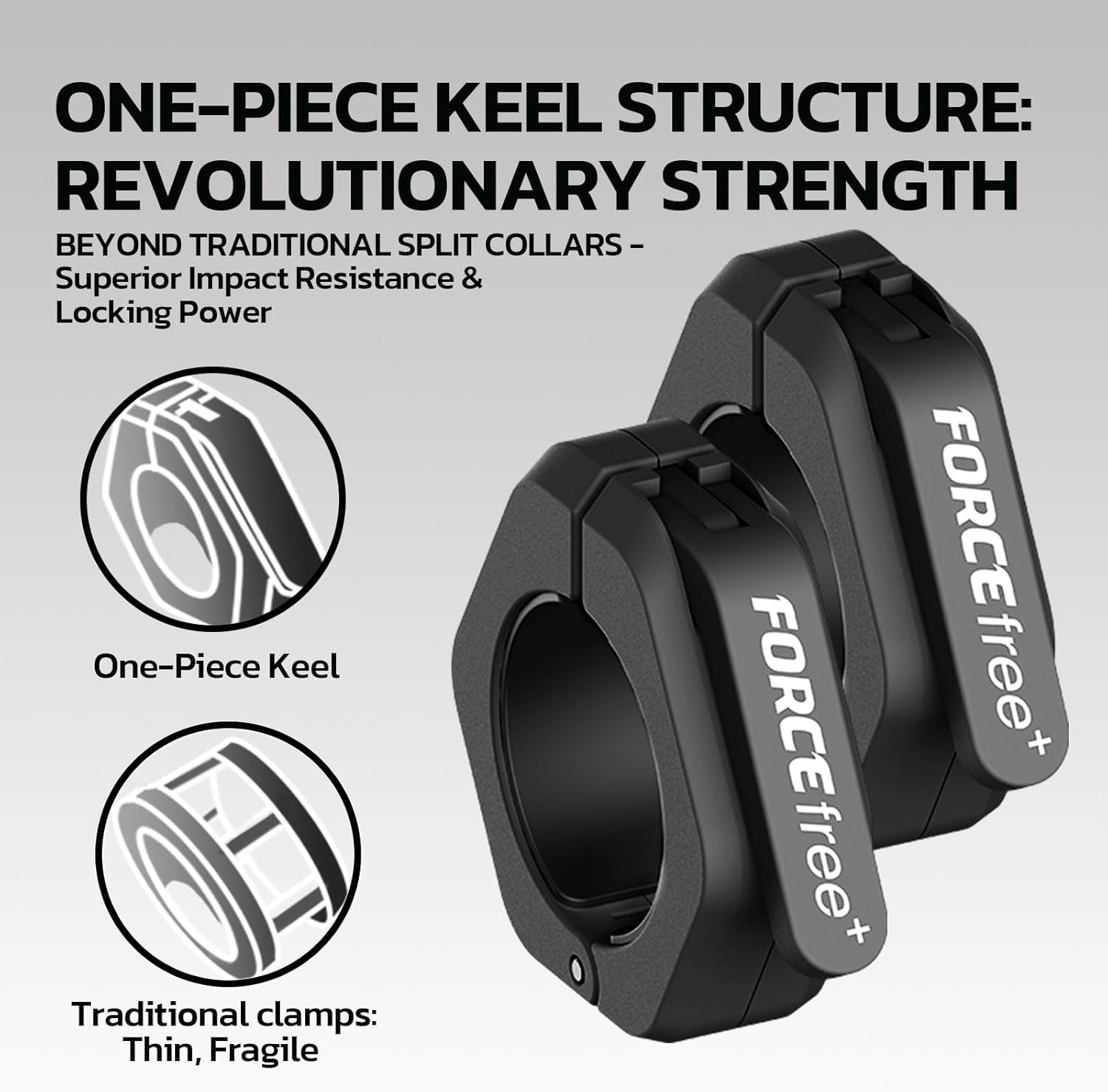 - šš¢š š” ššš«šš§š šš” & šš®š«ššš¢š„š¢šš²: Forcefree+ Barbell Clamps made of high quality innovative nylon and glass fiber composite, outperforming traditional ABS collars. This advanced material withstands heavy loads and ensures long-lasting stability and safety for your toughest workouts. Weight collars long-lasting and durable, very suitable for weightlifting, high lift, Olympic weightlifting, bench press and other strength training.