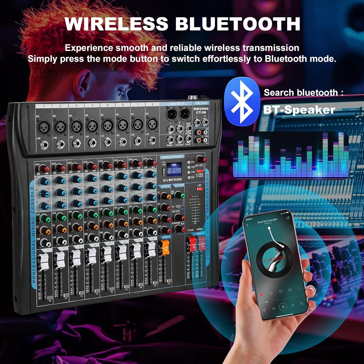 - 【Widely Uses】Our Pro Sound Mixer are fully featured to connect with a wide range of electronic devices and deliver accurate, clear sound quality. Whether you're performing on stage, interviewing, recording in a studio, conference, wedding or hosting karaoke at home, this mixing Console will meet your needs