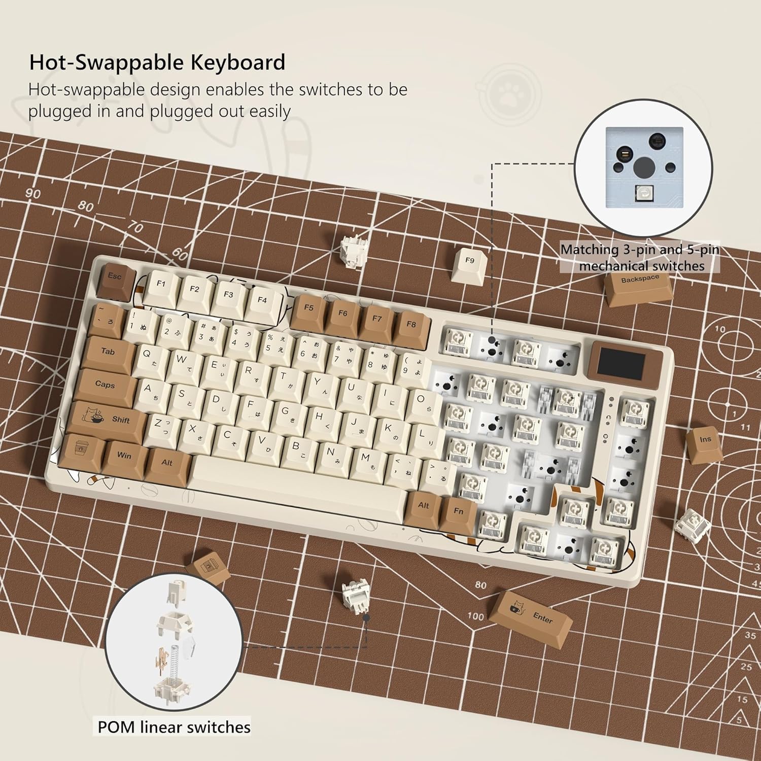 Womier SK80 Retro 75% Keyboard with Color Multimedia Display Mechanical Gaming Keyboard, Hot Swappable Gasket Mount RGB Custom Key Board, Pre-lubed Stabilizer for Mac/Win,Coffee Cat
