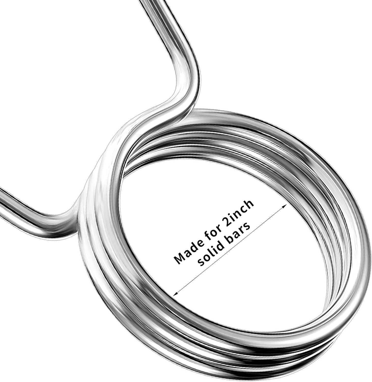- About size: each barbell clamp is about 174 g in weight and the hole of each spring collar measures approx. 50 mm/ 2 inches in diameter, please measure your bar diameter of barbell before your choosing and ensure better fi.