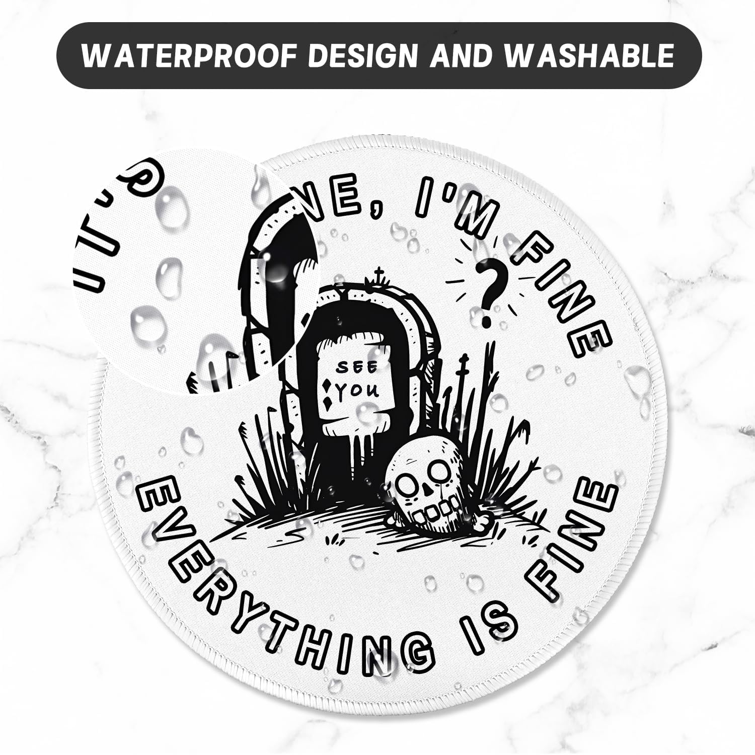 ITNRSIIET Round Mouse Pad with Stitched Edge Premium-Textured Waterproof Non-Slip Rubber Base Desktop Protection Mat Diameter 8.7 inches, Humorous Tombstone