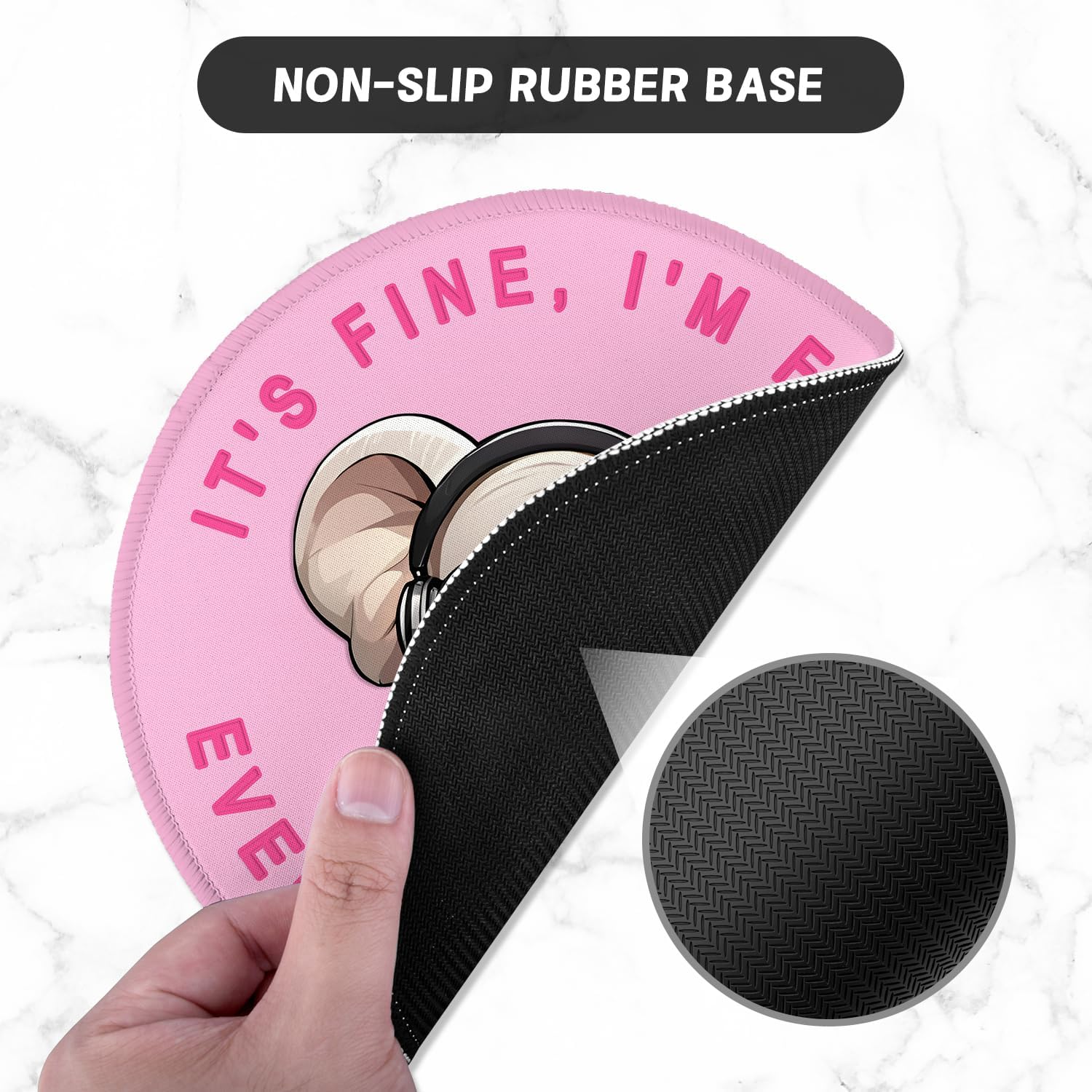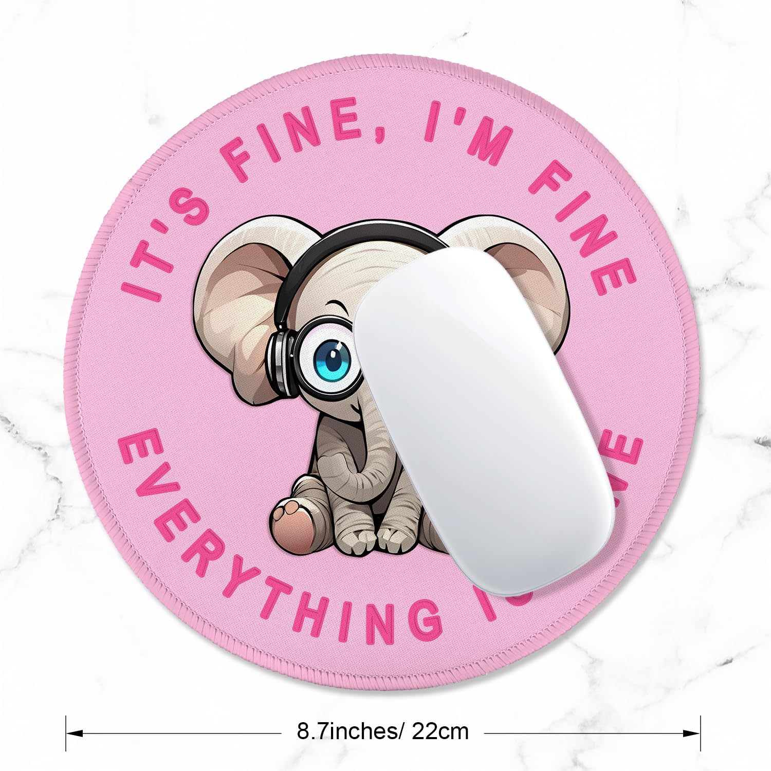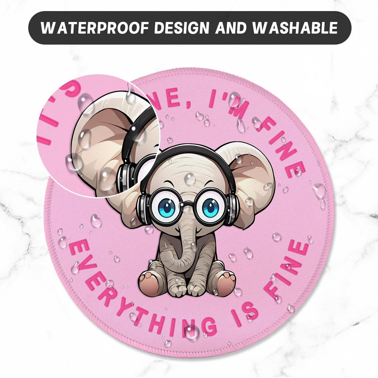 ITNRSIIET Round Mouse Pad with Stitched Edge Premium-Textured Waterproof Non-Slip Rubber Base Desktop Protection Mat Diameter 8.7 inches, Pink Pretty Elephant