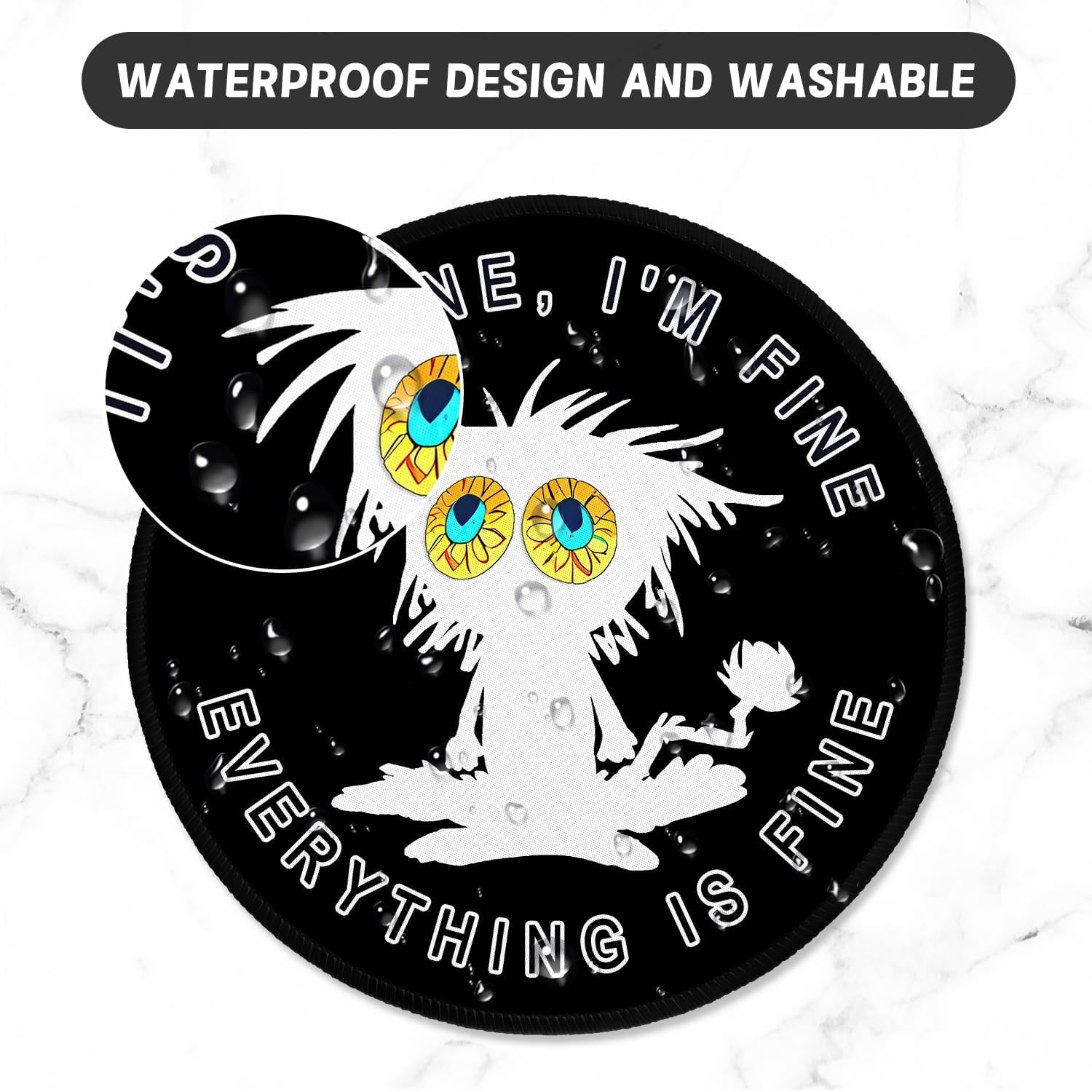 ITNRSIIET Round Mouse Pad with Stitched Edge Premium-Textured Waterproof Non-Slip Rubber Base Desktop Protection Mat Diameter 8.7 inches, Funny Cat