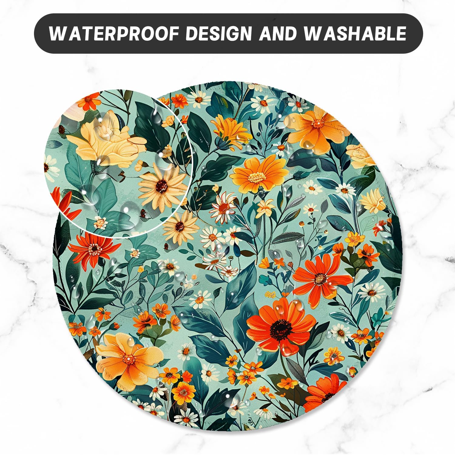 ITNRSIIET Round Mouse Pad with Stitched Edge Premium-Textured Waterproof Non-Slip Rubber Base Desktop Protection Mat Diameter 8.7 inches, Beautiful Flowers