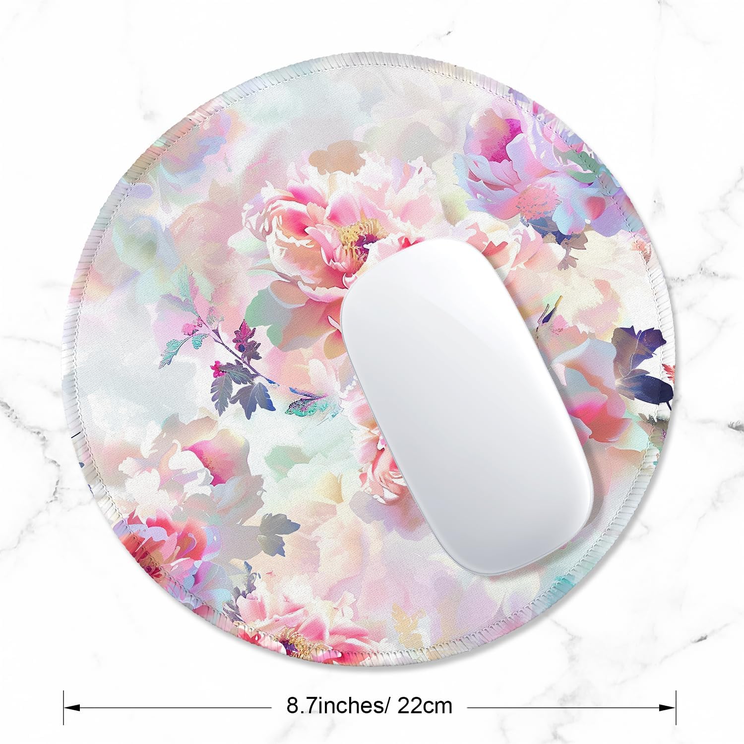 ITNRSIIET Round Mouse Pad with Stitched Edge Premium-Textured Waterproof Non-Slip Rubber Base Desktop Protection Mat Diameter 8.7 inches, Beautiful Flowers