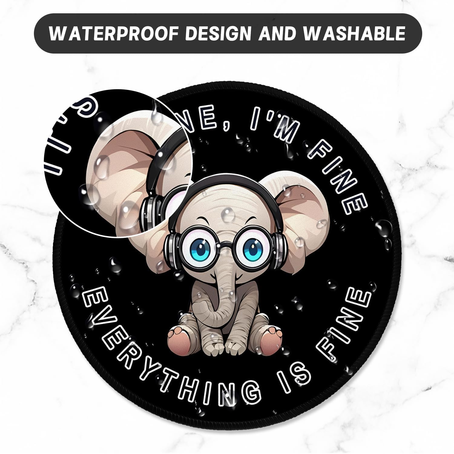 ITNRSIIET Round Mouse Pad with Stitched Edge Premium-Textured Waterproof Non-Slip Rubber Base Desktop Protection Mat Diameter 8.7 inches, Pretty Fine Elephant