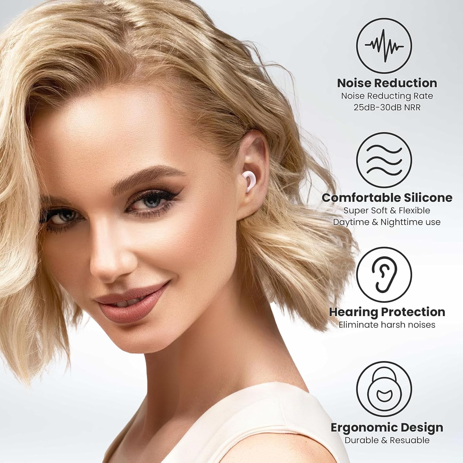 - Effective Noise Cancellation: The noise Cancelling ear plugs that reduce noisy voice level by up to 25dB-30dB, providing natural quiet sound quality to protect your ear hearing not influenced by noisy environment and help you to get in your bubble. The ergonomic round shape of sleeping ear plugs sits perfectly in your ears, making it a fashionable mountings that protect your hearing.