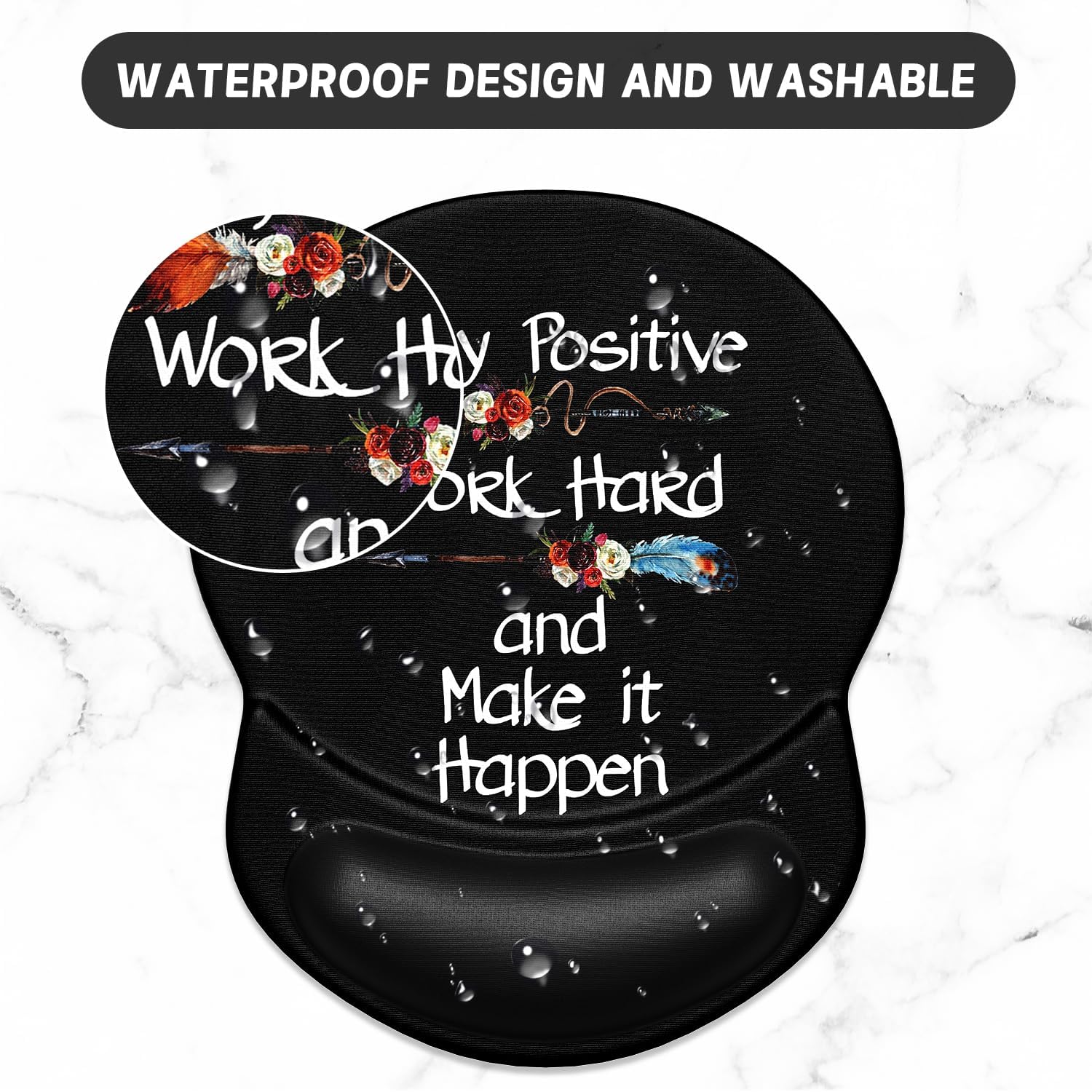 ITNRSIIET Ergonomic Mouse Pad with Gel Wrist Support Small Wrist Rest Smooth Surface Non-Slip PU Base Comfortable Office Supplies Pain Relief, 8.7 x 7.2 inches, Inspirational Quote Black