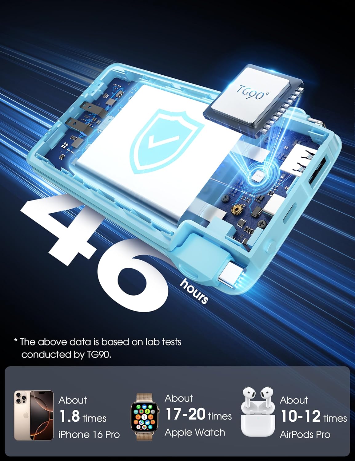 - Universal compatibility: The battery pack contains multi-type cables for all kinds of smartphones It is widely compatible with 16/15/14/13/16Pro/15Pro/14Pro/16Pro Max/15Pro Max, etc, and most Android phones