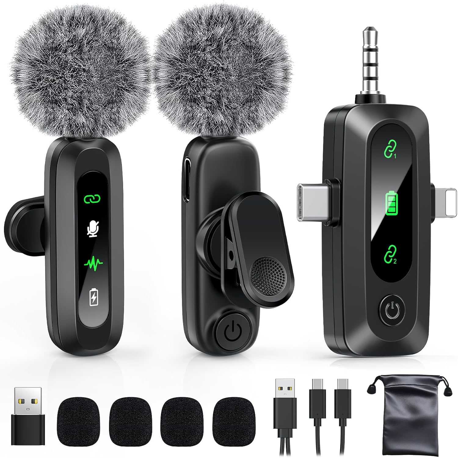 - Superior Sound with Active Denoise: Experience exceptional sound clarity with the GoorDik 3-in-1 wireless lavalier mic featuring advanced active denoise technology. With dual noise reduction modes – noise reduction mode and original sound mode. The wireless clip-on mini mic is equipped with 2 furry outdoor microphone windscreen muffs and 4 extra foam mic covers, ensuring crystal-clear audio even in noisy and windy environments.