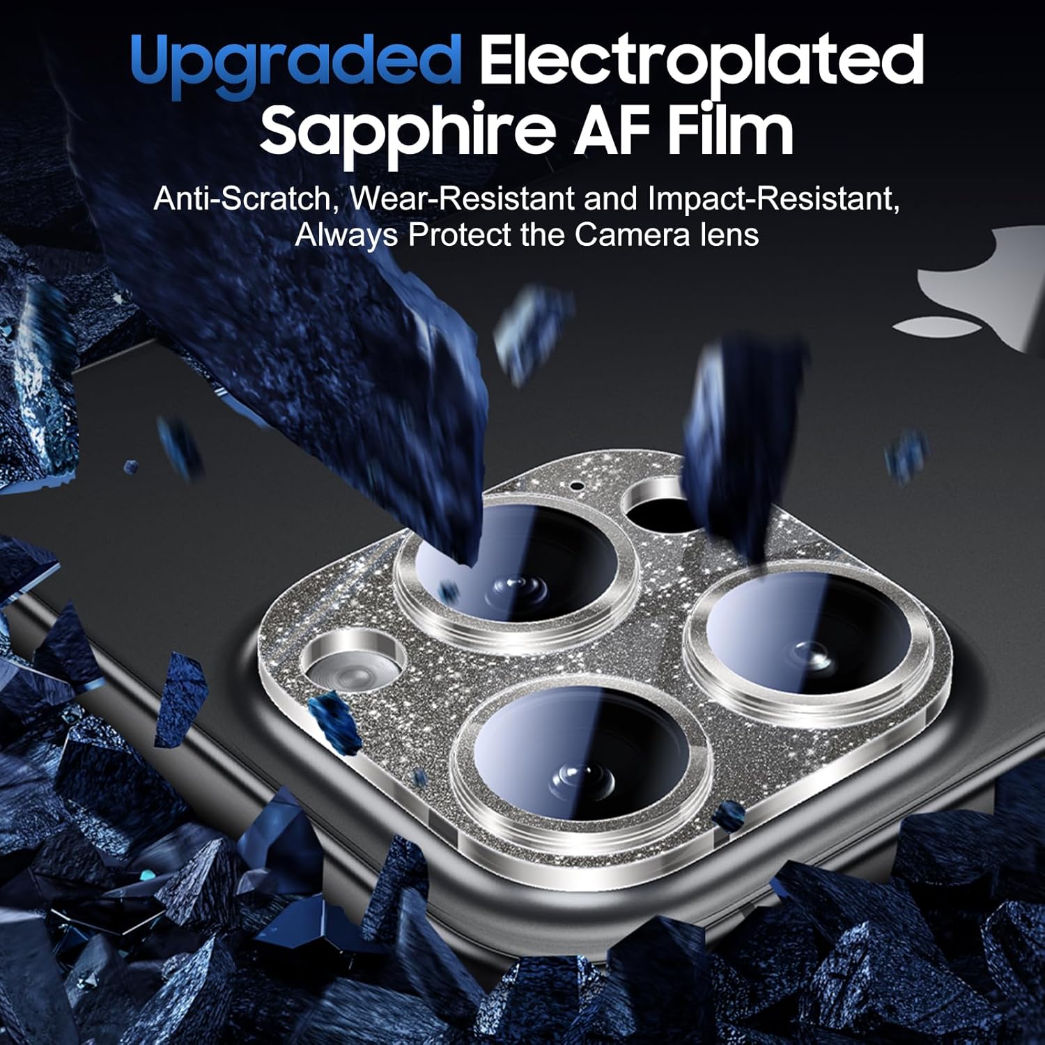 UniqueMe for 3 Pack iPhone 15 Pro/iPhone 15 Pro Max Camera Lens Protector, [Drop Protection] [Case Friendly] Camera Cover Screen [Update New Version] - Intergrated Glitter Black