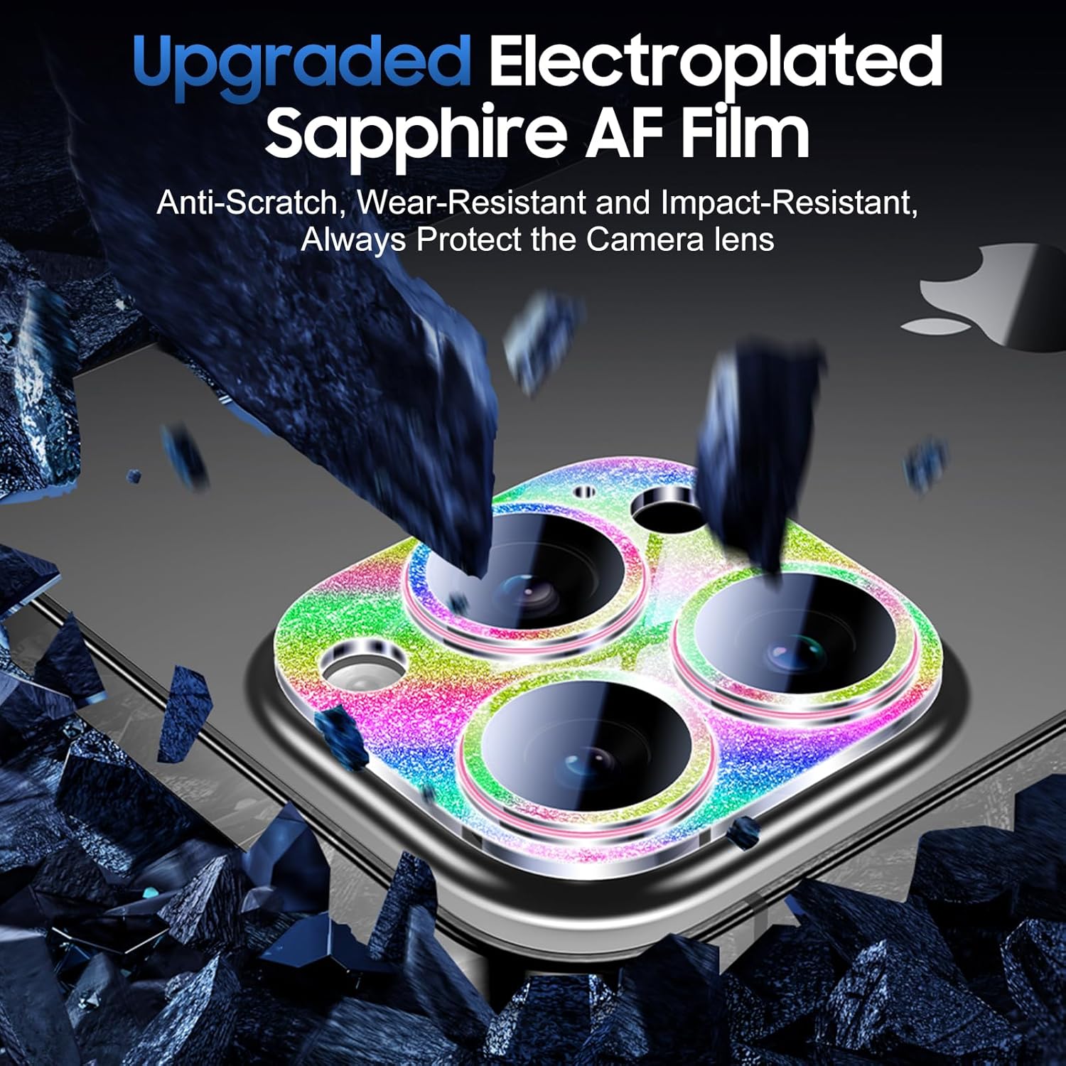 UniqueMe 3 Packs Compatible for iPhone 13 Pro Max/iPhone 13 Pro Camera Lens Protector Acrylic [Not Glass],[Case Friendly][Scratch-Resistant][Night Shooting Mode]-Glitter Colorful