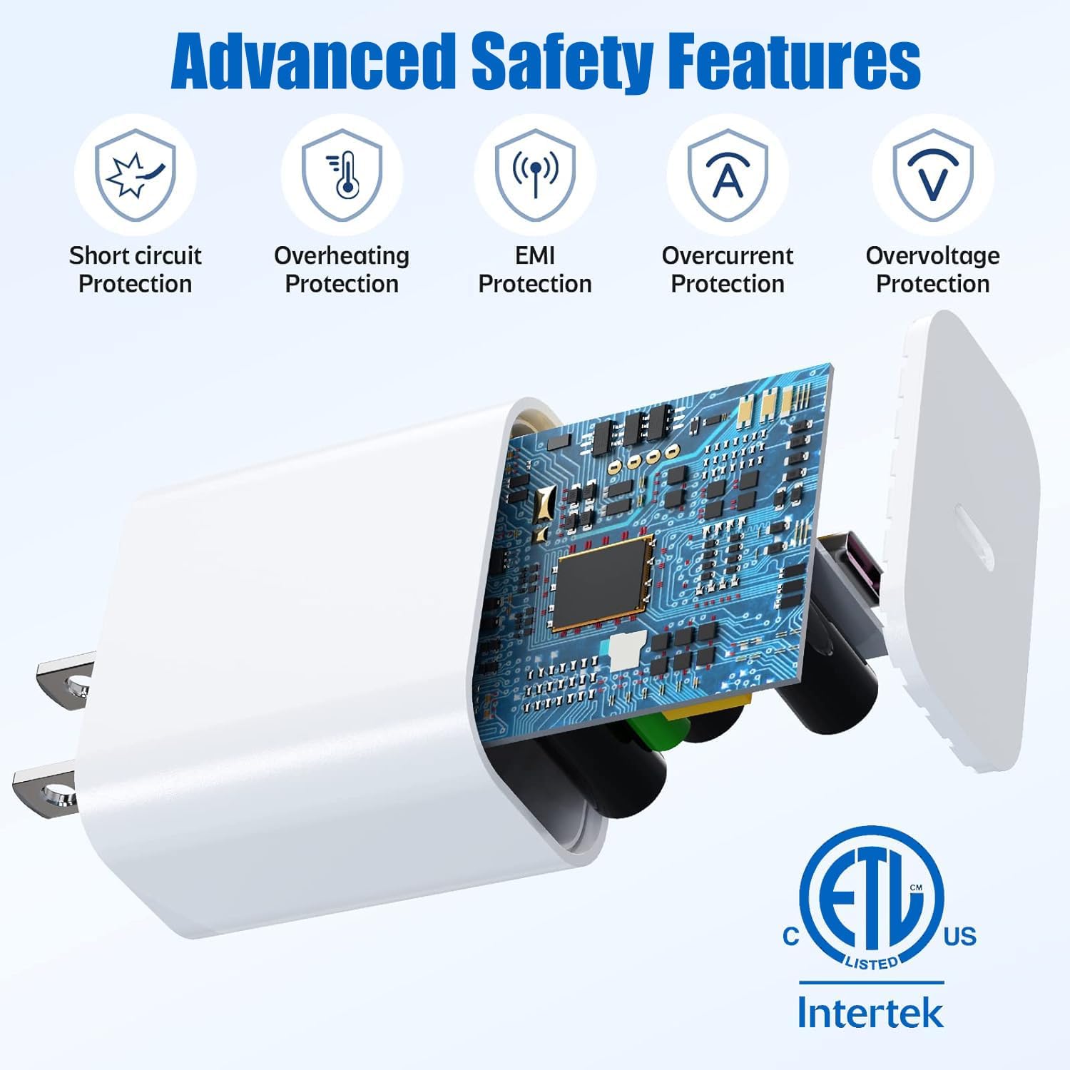 - 【Fast Charge iPhone 15】20W iPhone USB C charger block and charging cable are both equipped with smart chips, which can quickly charge New iPhone, full charge your iPhone 15 Pro Max from 0% to 30% in just 30 mins, 3X Faster than the standard USB charger.