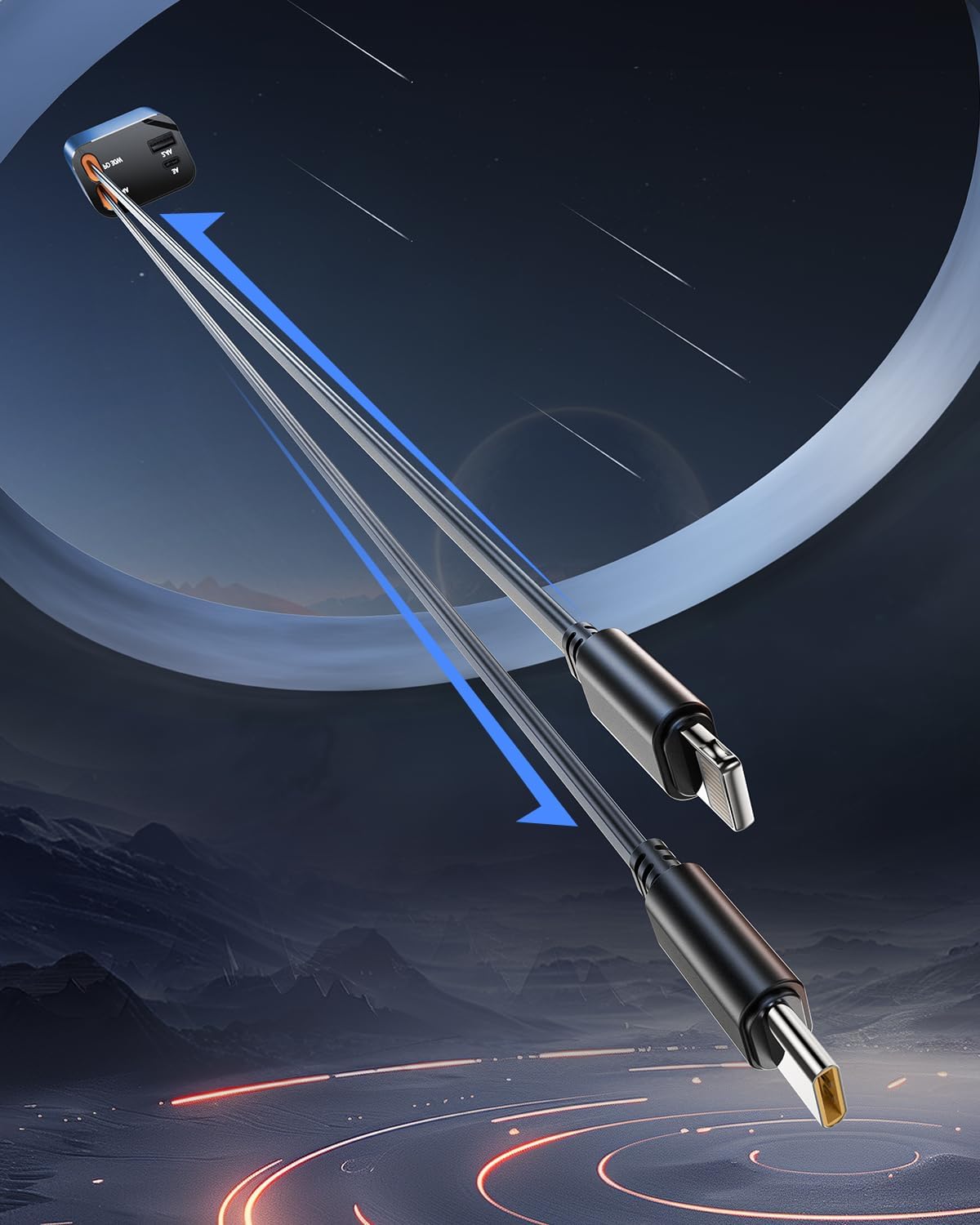 - Upgraded 4-in-1 Fast Charging Solution: Equipped with a real PD30W Type-C retractable cable (fast charging port), an IOS retractable cable, and additional USB-C and USB-A ports, this charger offers fast charging for up to four devices simultaneously. No need for multiple chargers – meet all your charging needs with one compact device.