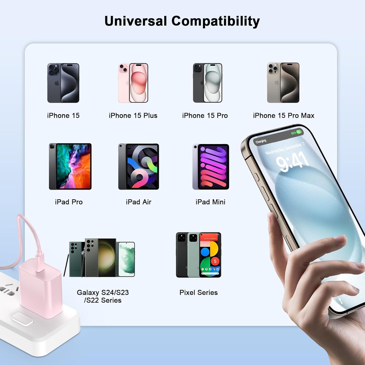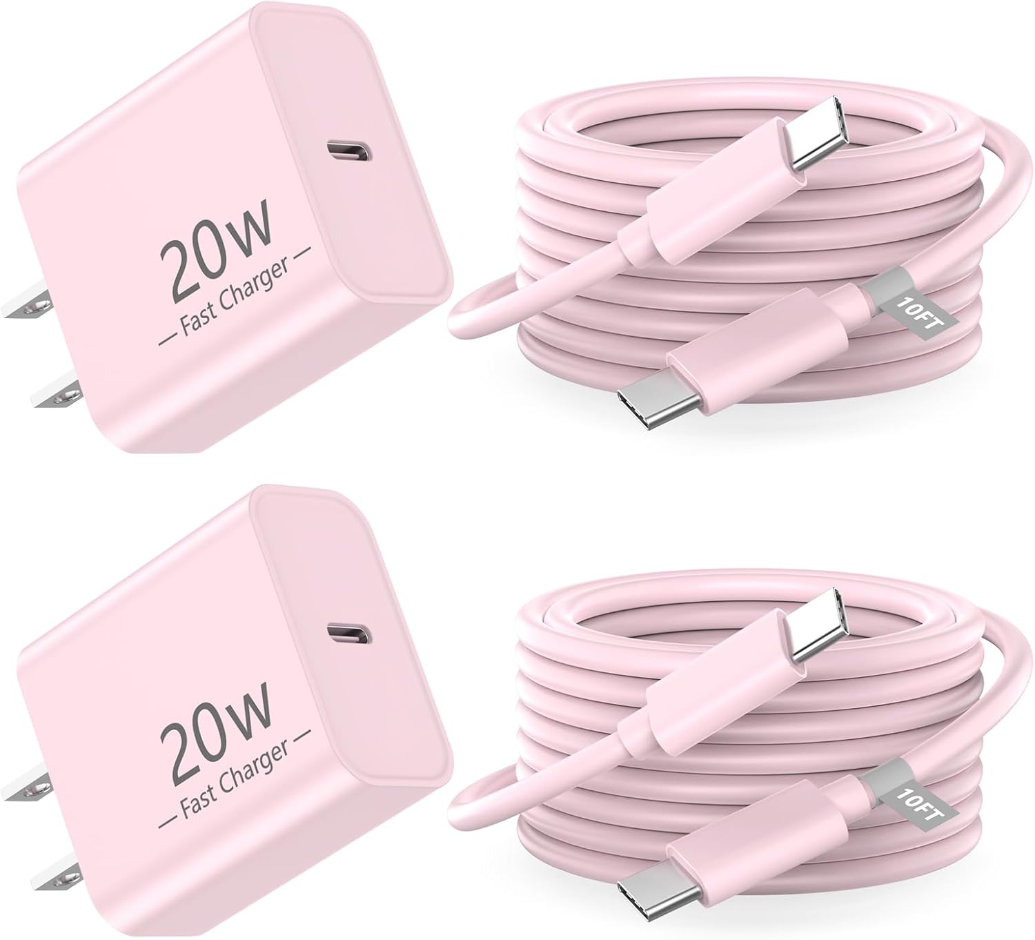 Matsusho iPhone 16 15 Charger Fast Charging 10 FT, 2 Pack 20W USB C Wall Charger with 10FT Type C Charger Fast Charging Cable for iPhone 16/16 Plus/16 Pro/16 Pro Max/15/15 Pro/15 Pro Max/15 Plus, Pink