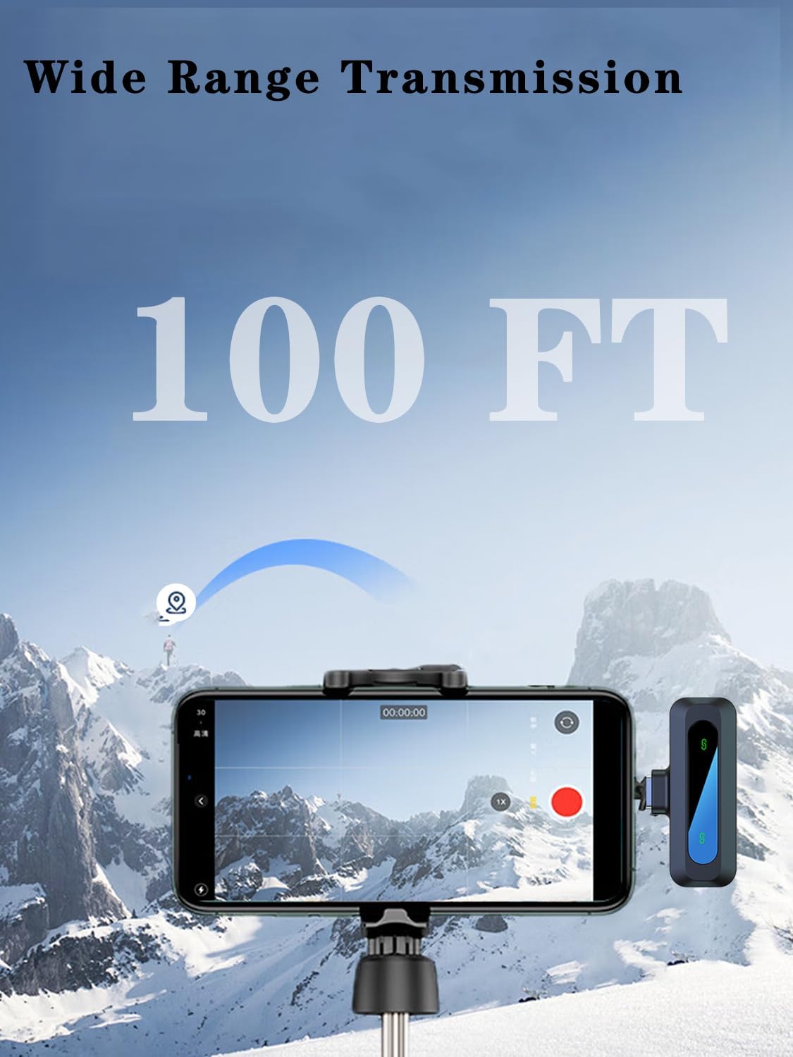 - Long-Range Wireless Tranmission: wireless microphone is completely free of wires and is perfect for interviews, video blogs, online meetings, immersive group events and engaging live multiplayer broadcasts. The wireless lavalier microphone works with iPhone, you can simply clip the microphone to your clothes to free your hands,100 feet of stable reception, and the freedom to record without limitations.