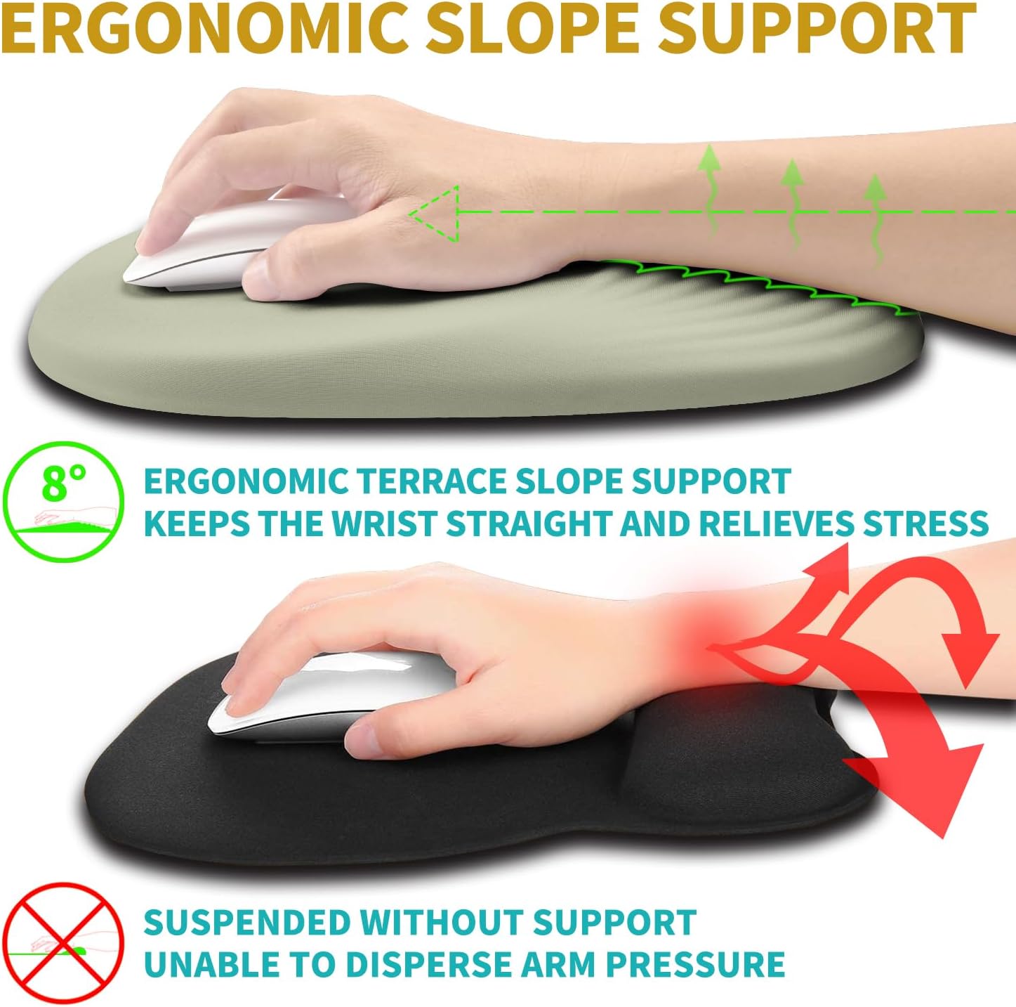 - 【Ergonomic Stepped-wedge Slope】The innovative ergonomic slope combines perfectly with the stepped wedge design. Effectively supporting the wrist and palm to alleviate pain and fatigue, improve carpal tunnel syndrome (CTS), strengthen air circulation between the wrist and mouse pad, prevent sweating, and keep the wrist in the most comfortable state.