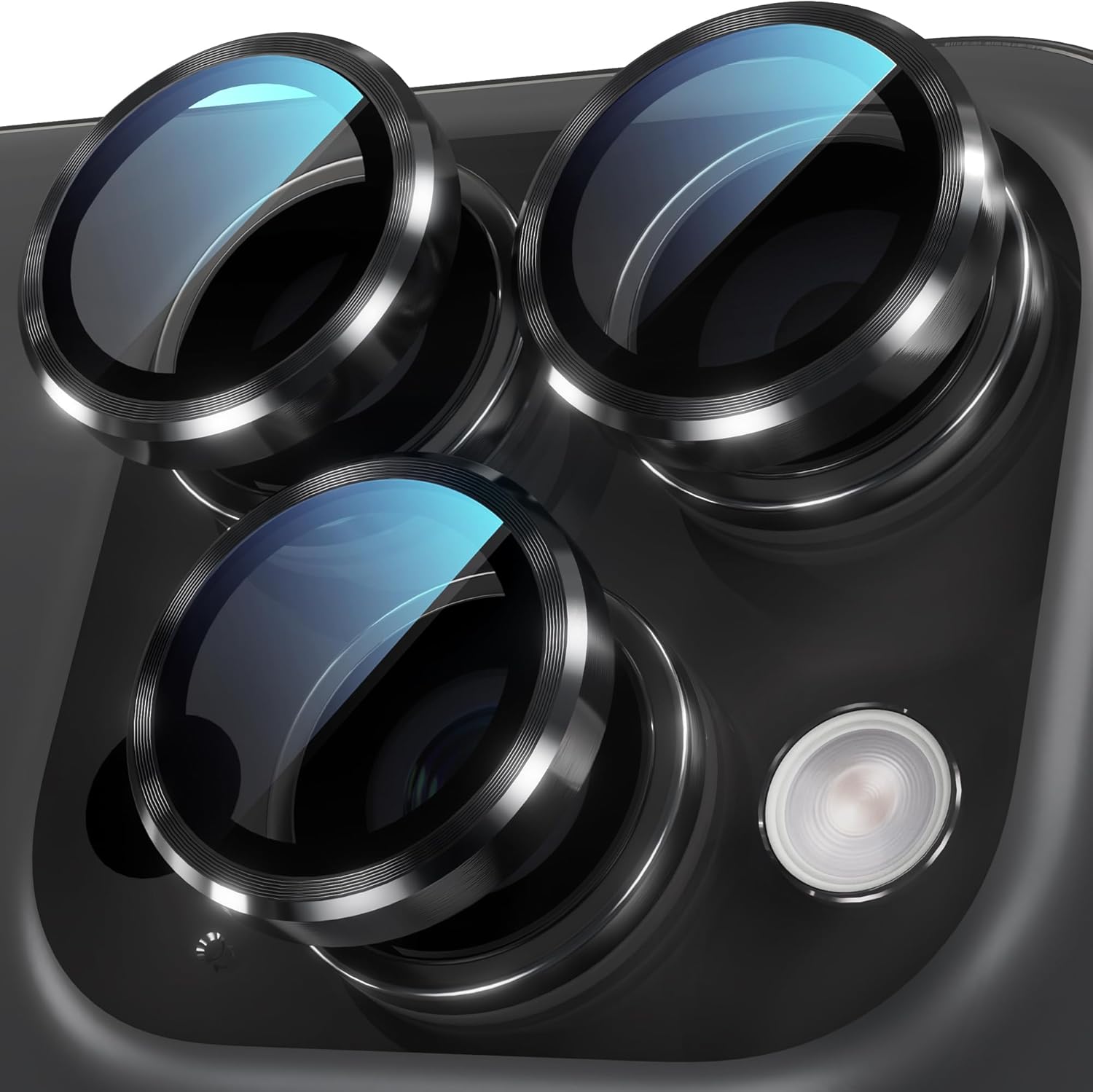 - One-step Installation: The iPhone 16 Pro camera lens protector is embedded in an acrylic positioning frame, just use our cleaning accessories to clean the lens, tear off the back protective film, align the camera lens and remove the positioning tray, the installation is done. All 3 individual camera lens covers are installed successfully at the same time, which is a very simple and considerate installation design. No bubbles and the lens cover will stick tightly for a perfect fit.