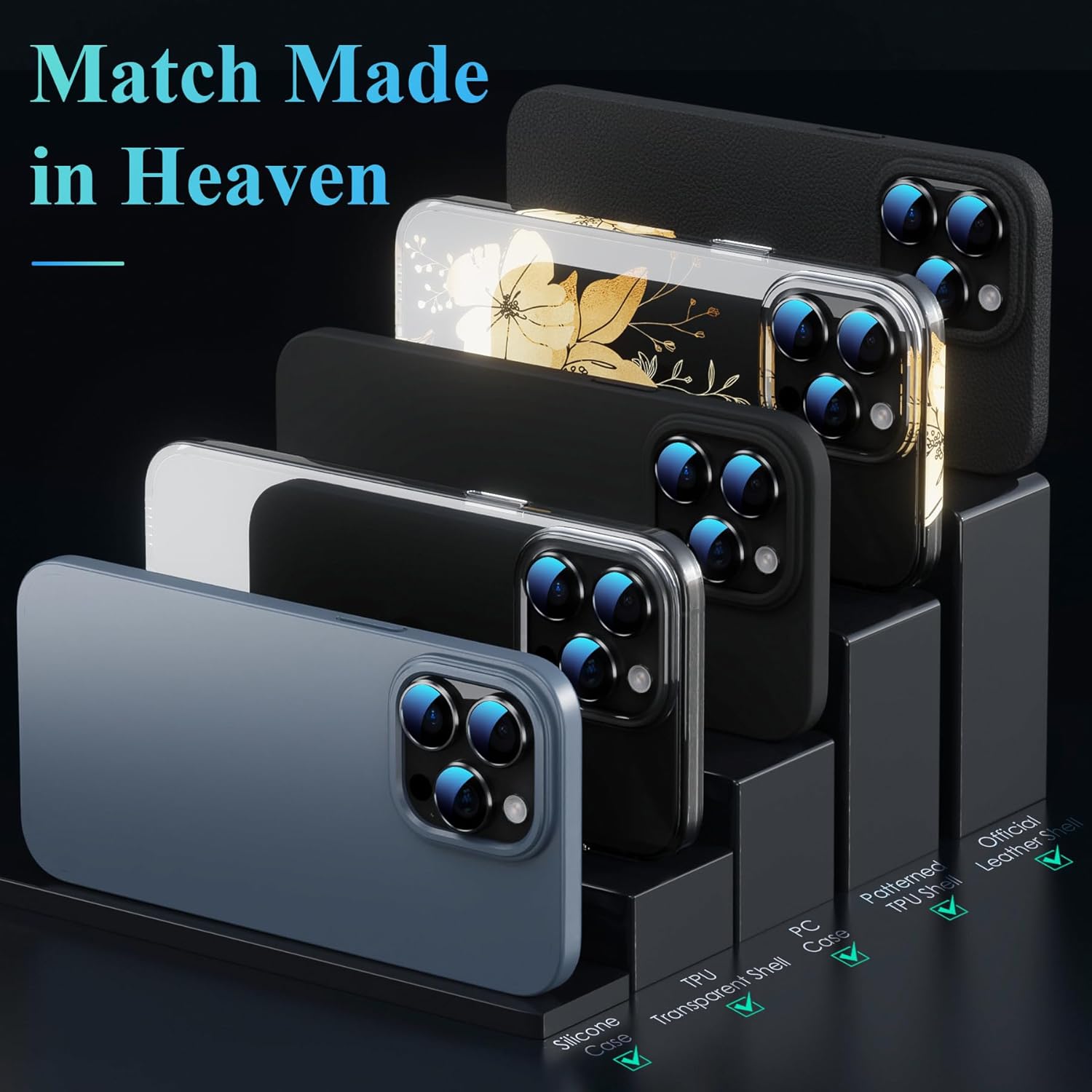 - One-step Installation: The iPhone 16 Pro camera lens protector is embedded in an acrylic positioning frame, just use our cleaning accessories to clean the lens, tear off the back protective film, align the camera lens and remove the positioning tray, the installation is done. All 3 individual camera lens covers are installed successfully at the same time, which is a very simple and considerate installation design. No bubbles and the lens cover will stick tightly for a perfect fit.