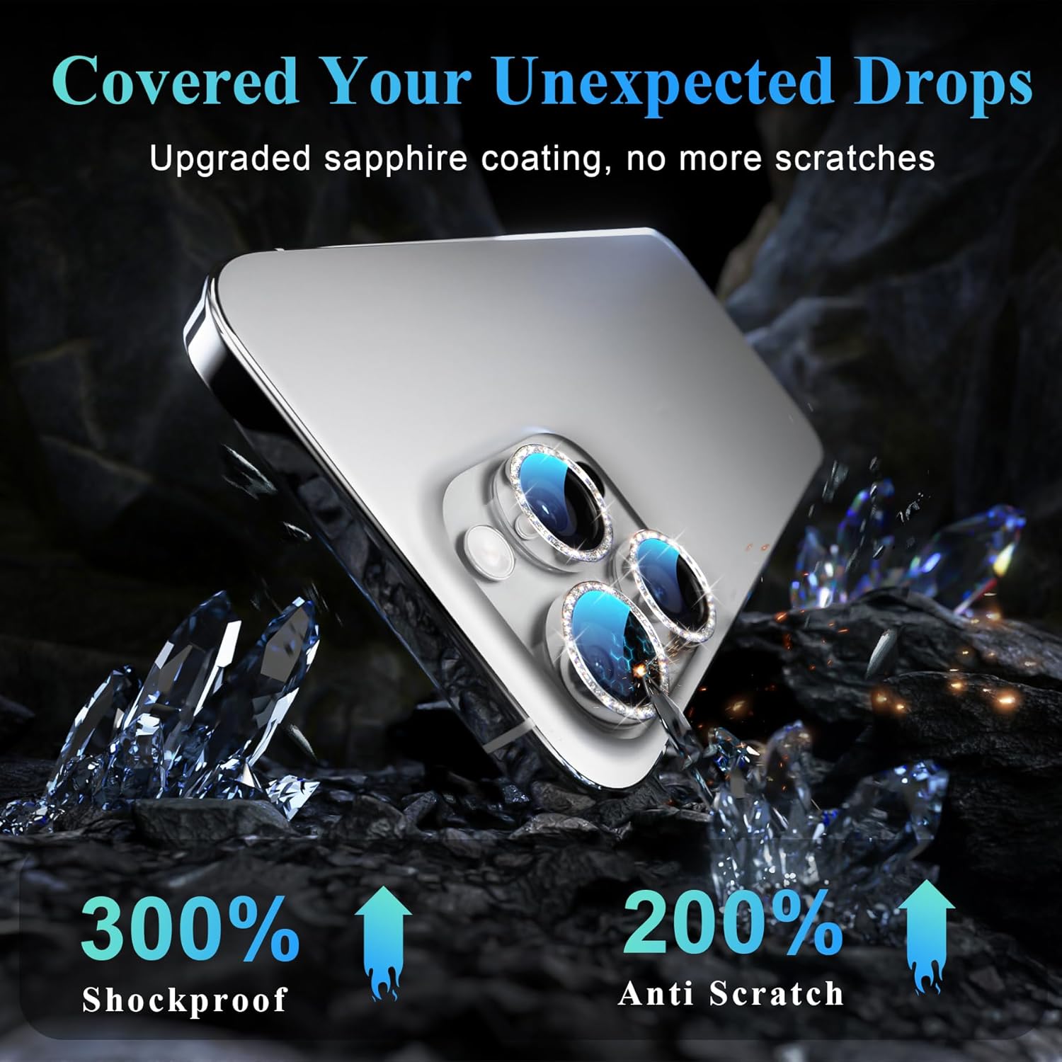 - Enhanced Anti-drop and Anti-scratch Protection: Enhanced 12 layers of electroplated sapphire 9H tempered glass will not break and crack in the face of super-strong foreign object impact, and even hard rocks are difficult to leave scratches on its surface. Give your phone camera lens everyday protection from accidental drops and bumps. The 3th gen oleophobic technology can automatically dilute fingerprints and isolate oil, keeping the lens dry and clean for a long time.