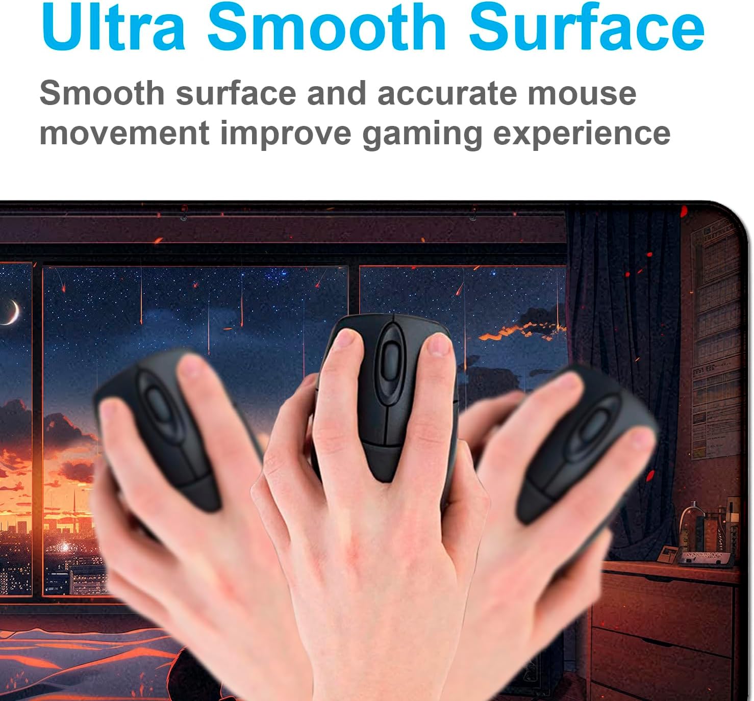 - Non-Slip Natural Rubber Base: This extended large mouse pad is soft and thick 3 mm/0.12 inches, the base is made of high quality natural rubber, which is harmless to human health. There will be no unpleasant smell. The mouse pad is designed with dense textured rubber, which can firmly grasp your desktop, avoid random movement, and provide stable operation for your mouse/keyboard.
