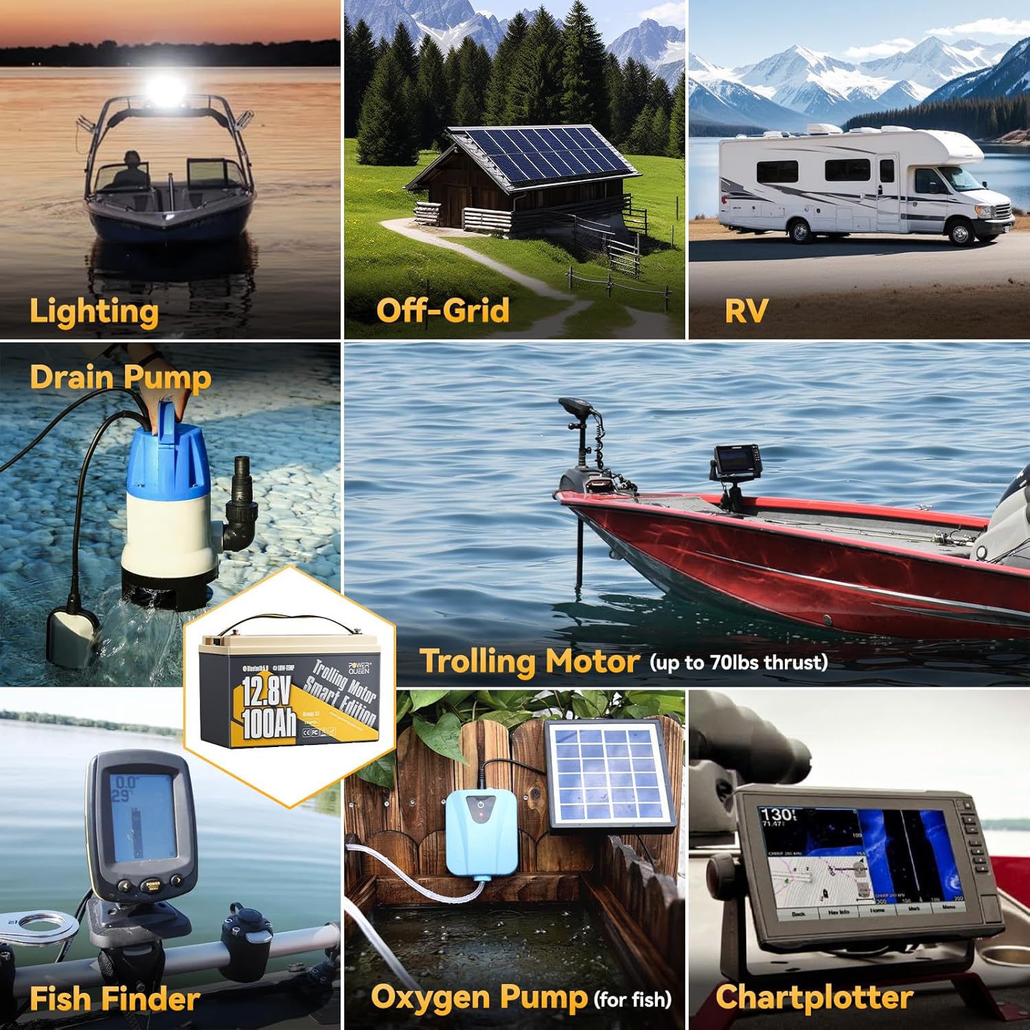 - ăDesigned for Trolling Motors, Enhance Your Fishing ExperienceăWith a maximum discharge current of 500A for 1 second, this battery provides exceptional precision and smoothness in operating your trolling motor (30-70 lbs). The upgraded BMS offers superior protection against moisture and salt spray, ensuring long-lasting performance and an extended lifespan