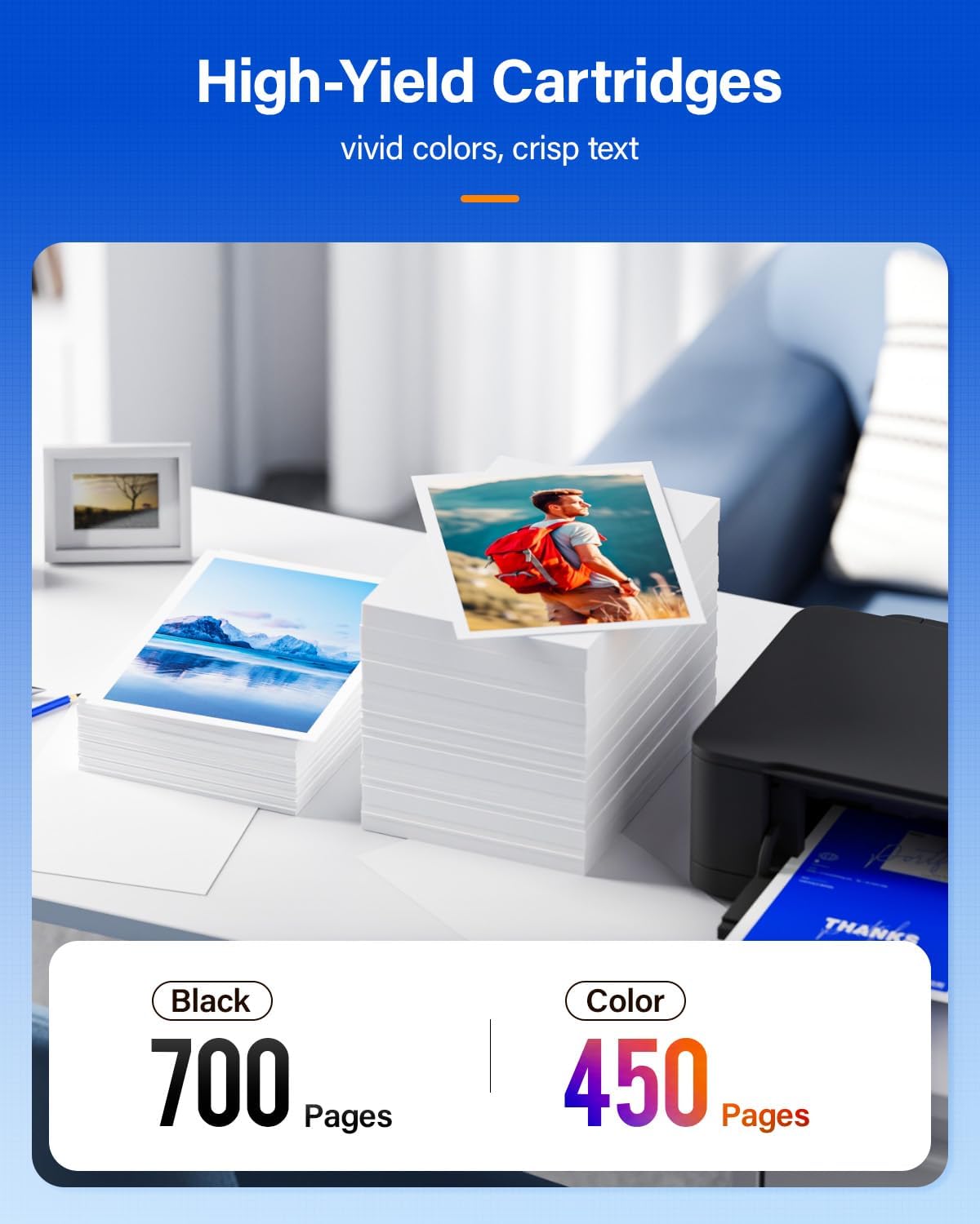 - Yield & Version: 700 pages for Black and 450 pages Color ink cartridge (A4, 5% Coverage), with High Yield Version 61XL.
