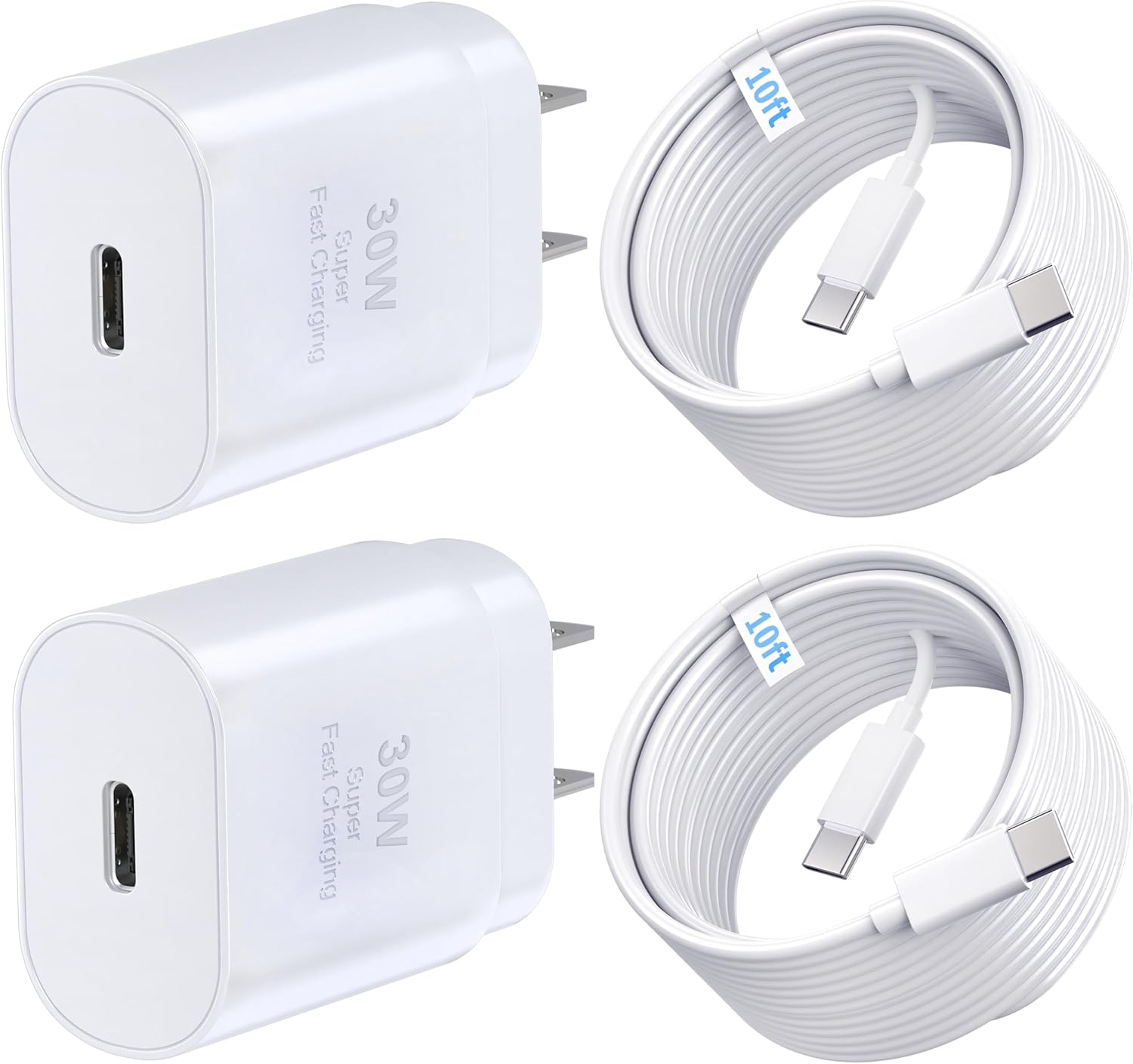 - γ Package Included γ: 2x 30W Charging Block, 2x10ft Type C to C Charging Cord. 12-month replacement & 24*7 friendly customer support, if there is any quality problem, please contact us!