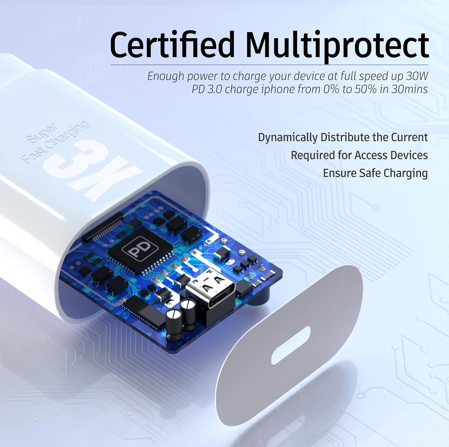 - γ Superfast Charging Technology γ: Say goodbye to lengthy charging times! Equipped with advanced superfast charging technology, this 30W charging block delivers a lightning-fast charging experience for all your compatible devices. Whether it's your Smartphone, tablet, smartwatch, or other gadgets, power up in no time and keep up with your on-the-go lifestyle