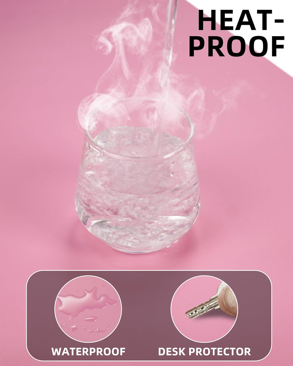 Leather Desk Pad Protector,Desk Mat,Large Mouse Pad, Non-Slip Desk Pad, Waterproof PU Leather Desk Blotter Mat, Desk Cover for Office and Home (Pink, 36" x 17")
