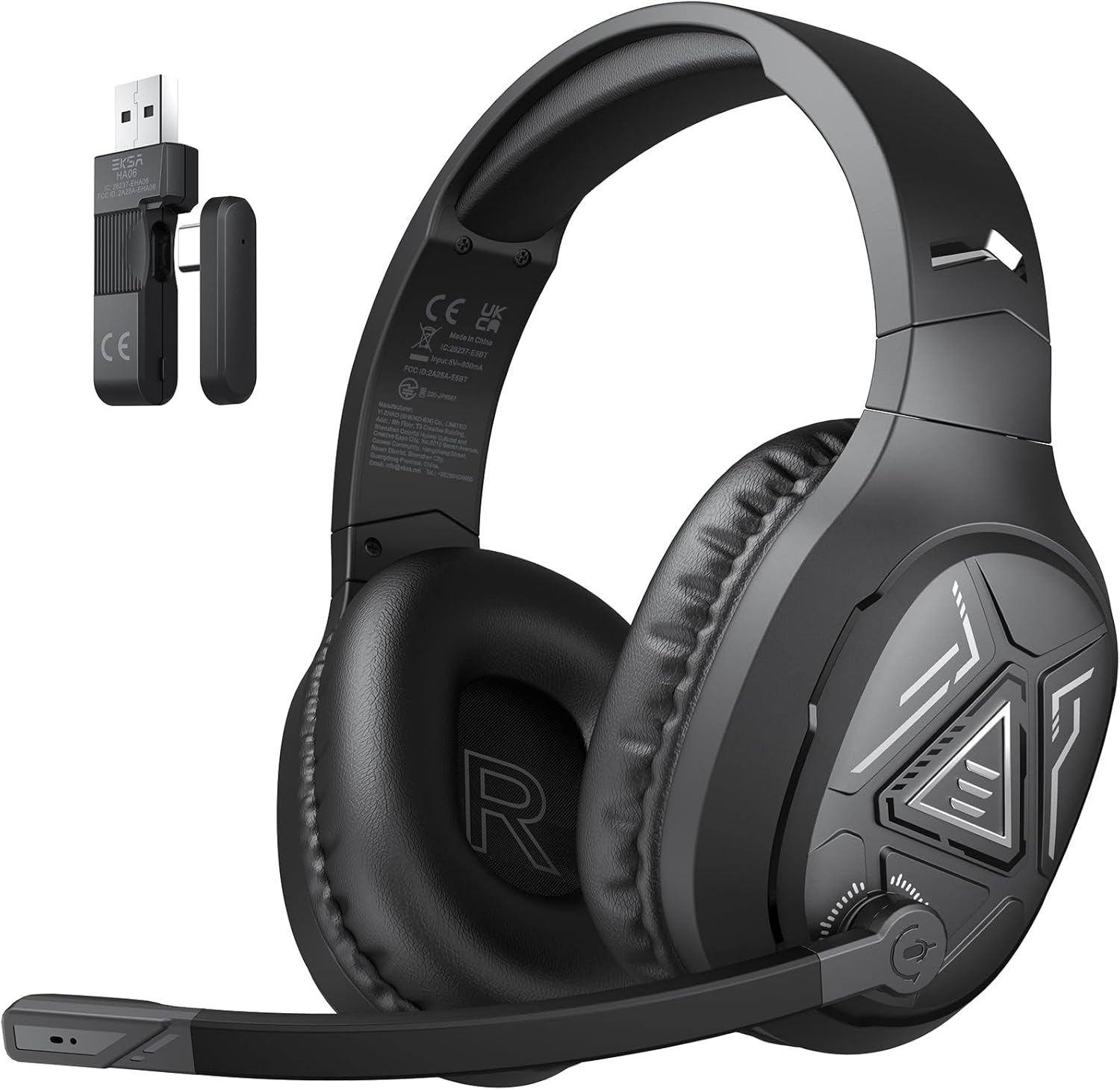 EKSA 2.4GHz Wireless Gaming Headset with Noise Canceling Microphone for PS5, PC, PS4 Bluetooth Gaming Headphones with USB & Type-C Connector, 52Hrs Battery PC Headset for Switch, Laptop, Mobile, Mac