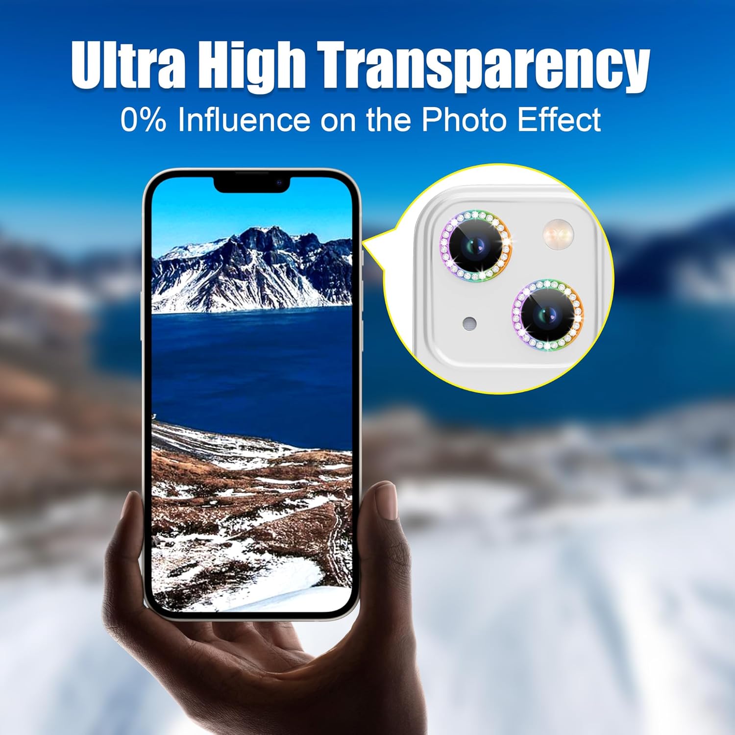 - ā[Two Bling Effects] There are 3 bling diamond rings and 3 bling glitter rings in the package. Free to match according to your own personal preferences. These rings glass are optical grade, protect your iPhone 13 mini / 13 camera lens from damage and scratches and has no effect on taking photos. Fully high transmittance sapphire glass with AR anti-reflection function: Camera anti-fall protection and Bling Bling Effect and Fully restored image quality.