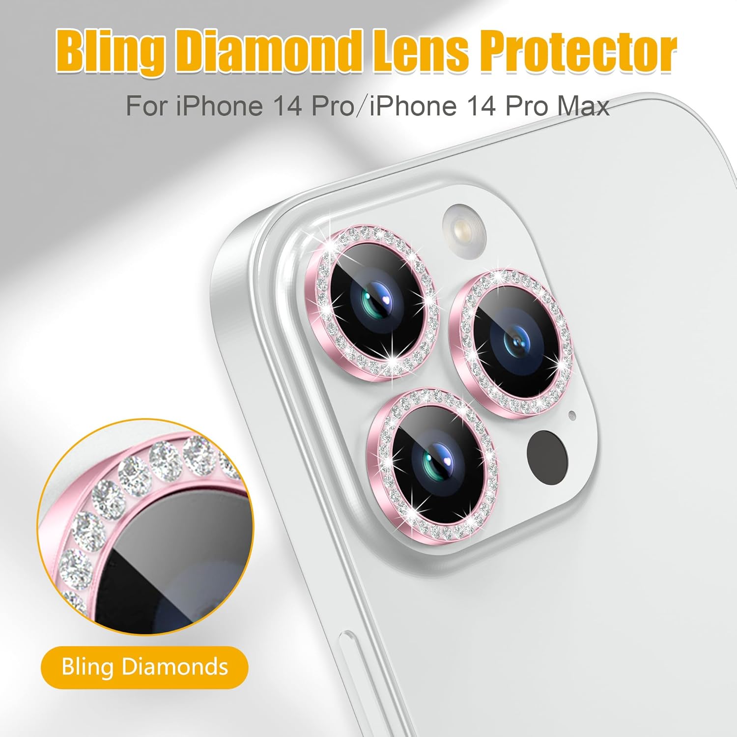 - ā[Two Bling Effects] There are 3 bling diamond rings and 3 bling glitter rings in the package. Free to match according to your own personal preferences. These rings glass are optical grade, protect your iPhone 14 Pro / 14 Pro Max camera lens from damage and scratches and has no effect on taking photos. Fully high transmittance sapphire glass with AR anti-reflection function: Camera anti-fall protection and Bling Bling Effect and Fully restored image quality.