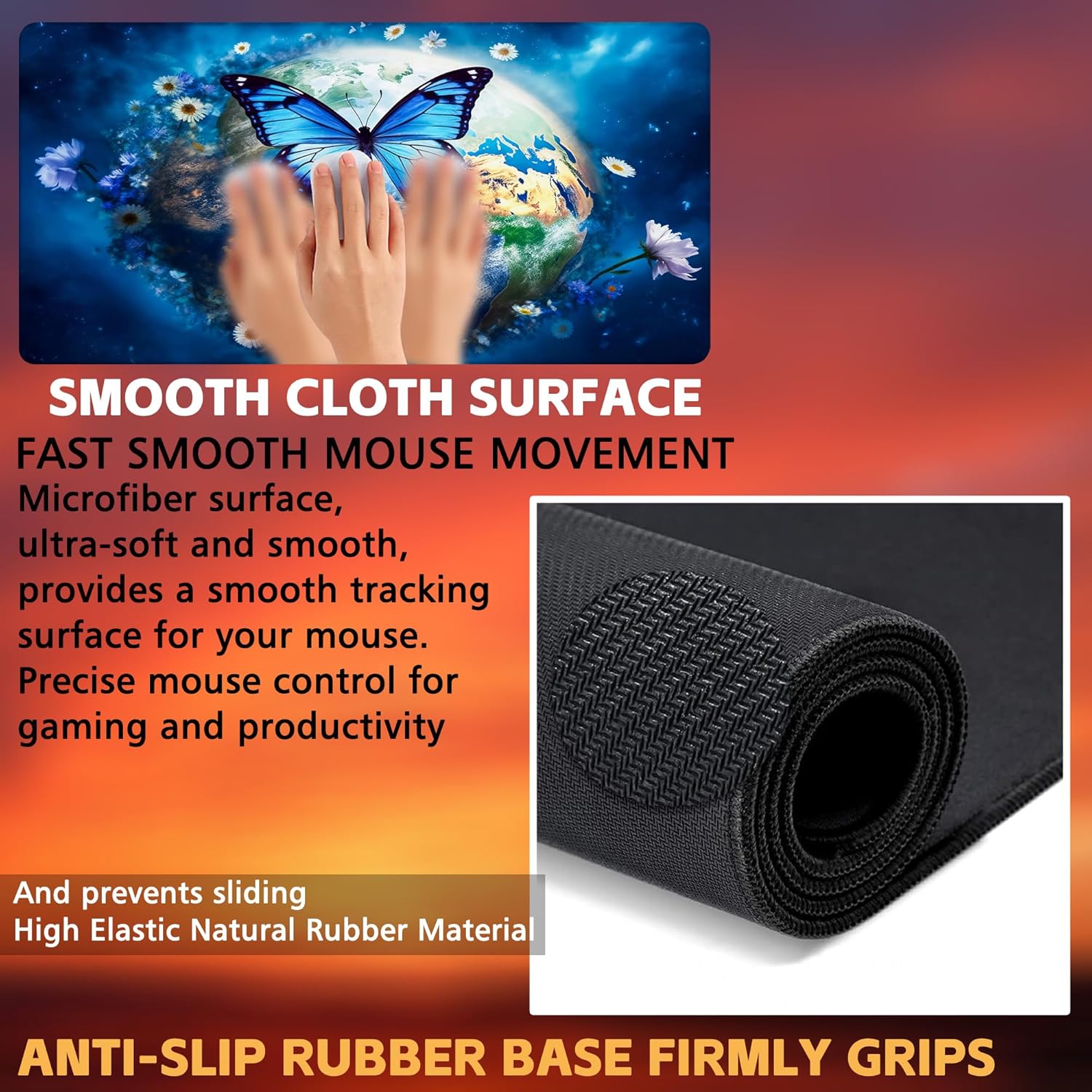- 【Excellence Anti-Slip】: The soft and flexible non-slip rubber bottom provides increased friction resistance, keeping the mouse pad firmly in place on your desktop. It stays evenly flat even on imperfect surfaces, allowing you to immerse yourself in your work or game without the annoyance of mouse pad movement.