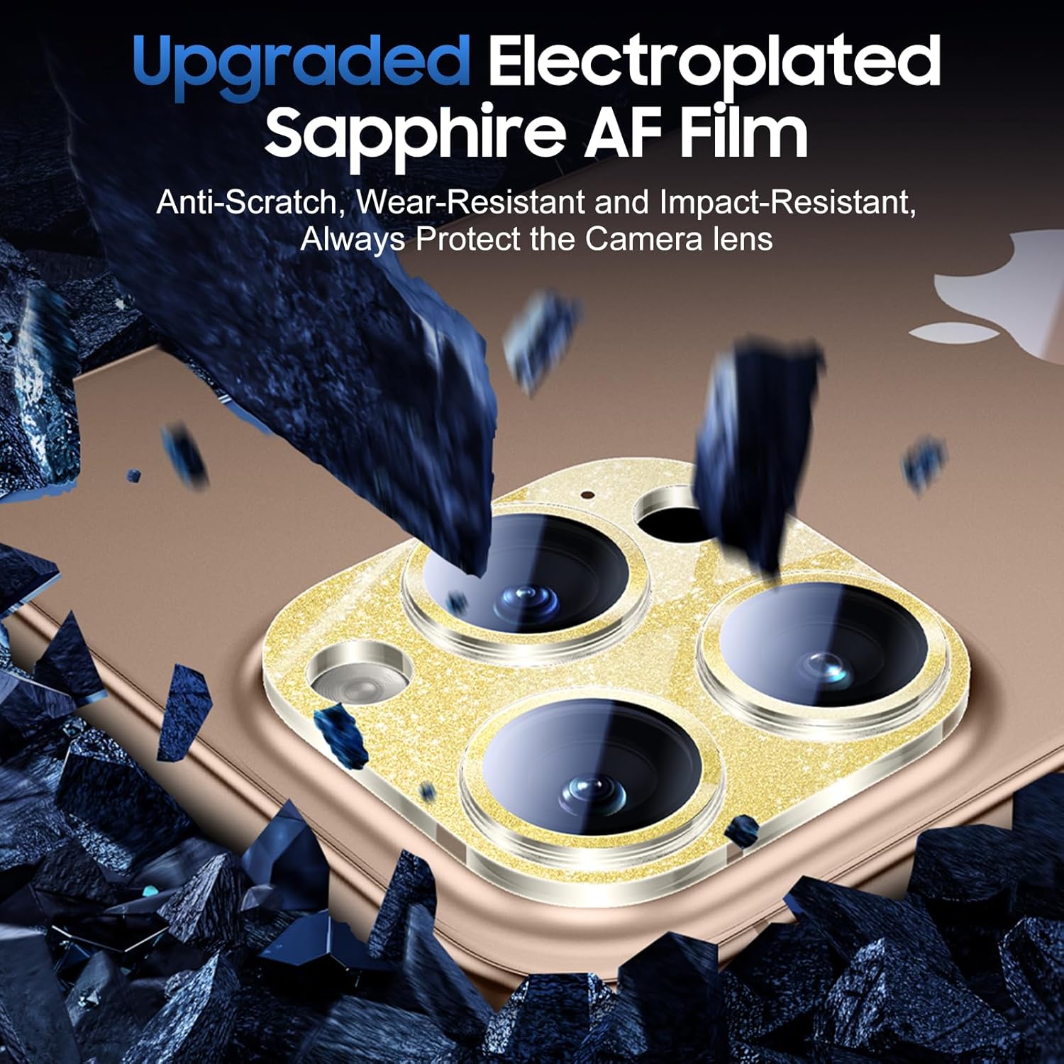 UniqueMe for 3 Pack iPhone 16 Pro/iPhone 16 Pro Max Camera Lens Protector - [Drop Protection] [Case Friendly] 9H Tempered Glass Camera Cover Screen [Update New Version] - Glitter Gold