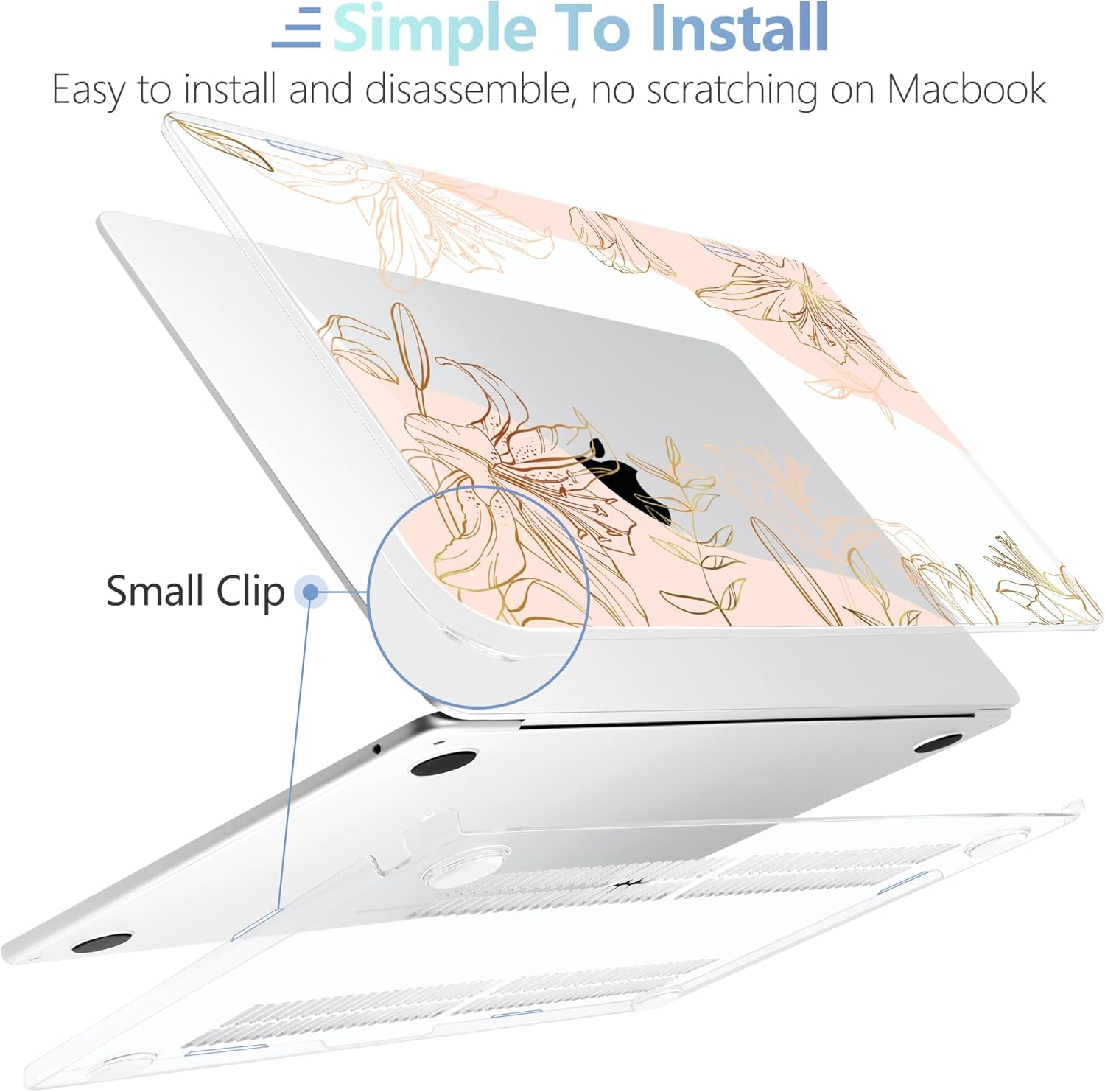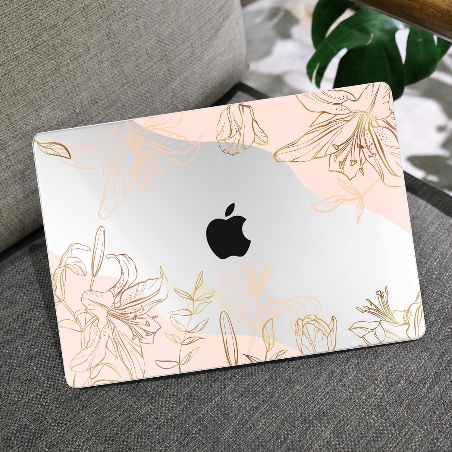 MEEgoodo Case for MacBook Air M4/M3/M2 13.6 inch 2025 2024 2022, Fit Model A3240 A3113 A2681, Compatible with MacBook Air 13 inch, Laptop Hard Shell Case with Keyboard Cover, Gold Flowers Lilies
