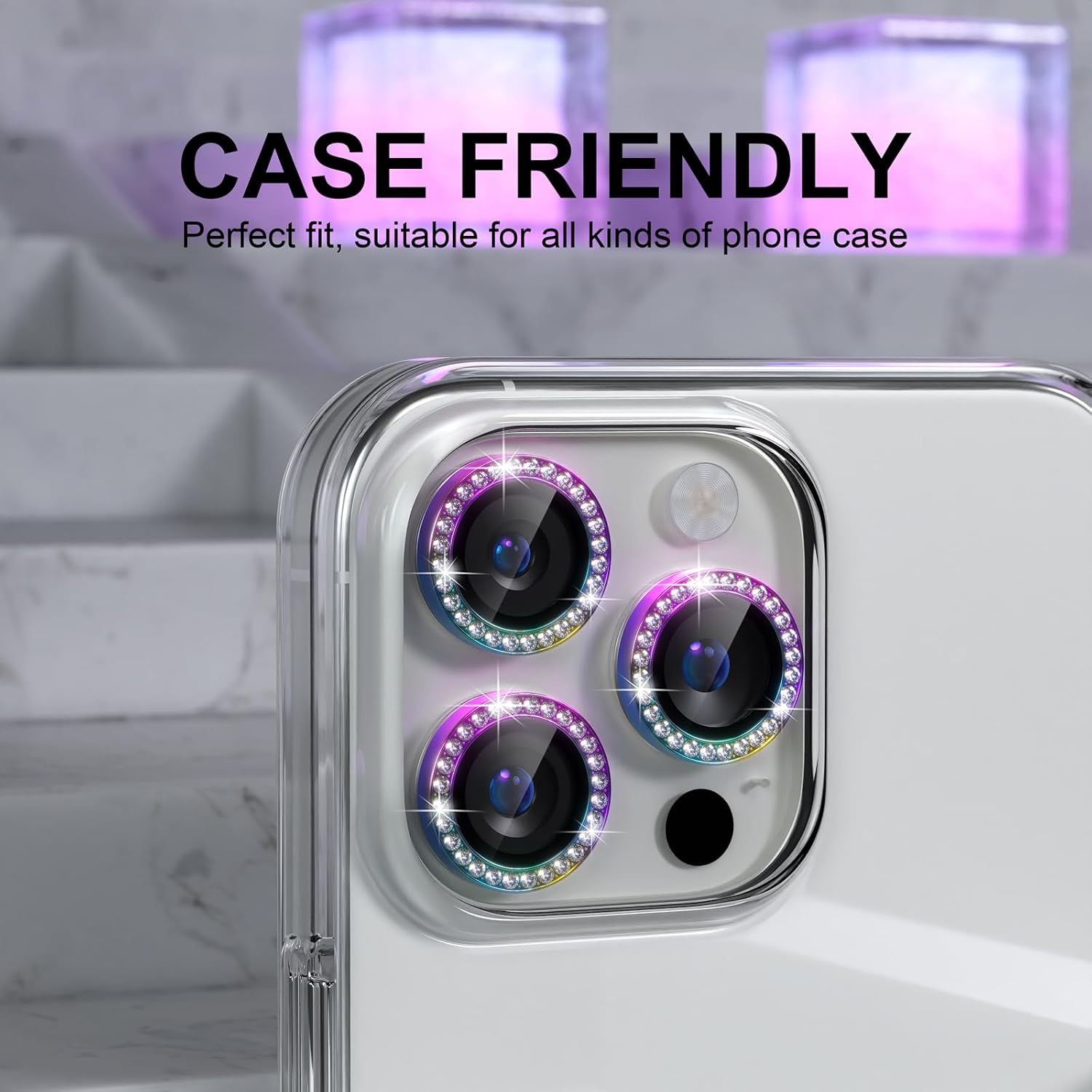 - Personalized Decoration: Made of high-quality aviation aluminum metal ring and 9H tempered glass and inlaid with bling rhinestones to give your 16 Pro/Pro Max camera lens a diamond gorgeous appearance, shining in the sun, very eye-catching and complimentary.