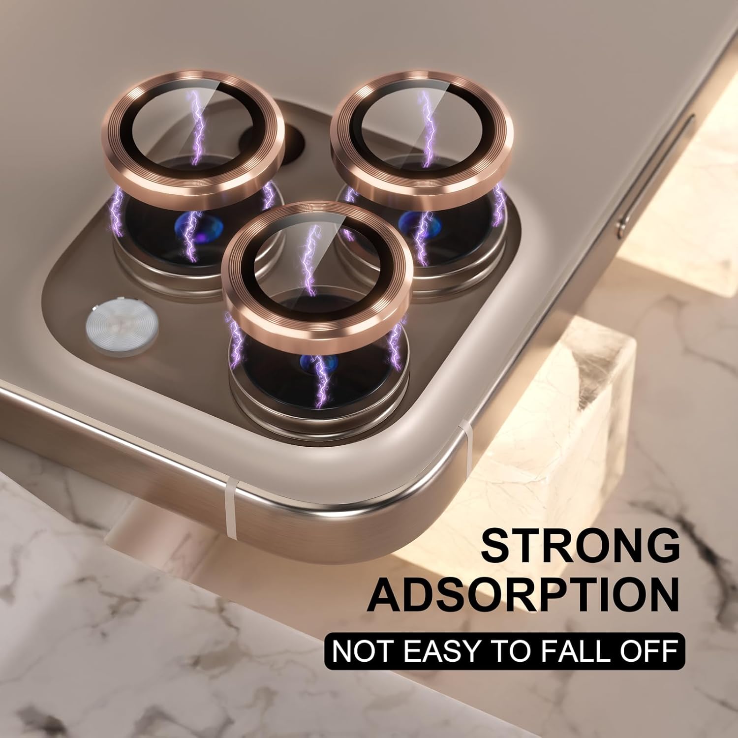 Choiche Compatible for iPhone 16 Pro/iPhone 16 Pro Max Camera Lens Protector, 9H Tempered Glass Camera Cover Screen Protector Metal Ring Decoration Accessories(Titanium Desert)