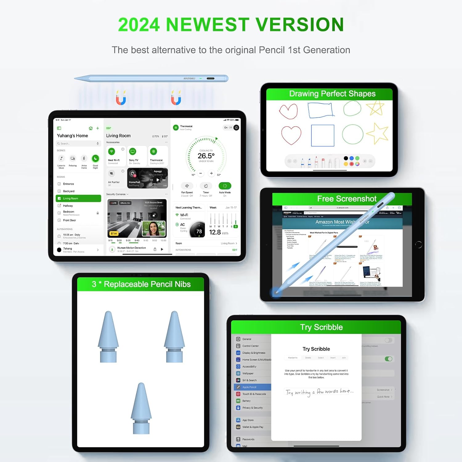 - DESIGNED FOR IPAD 2018-2025: The pencil for ipad is compatible with ipad 6/7/8/9/10/11 generation, ipad Air M2/M3/3/4/5 generation, ipad Mini (5/6 generation), ipad pro 11" M4/1/2/3/4 generation,13" M4 and 12.9"(3/4/5/6 generation), which definitely the best alternative to pencil 1st/2nd generation.