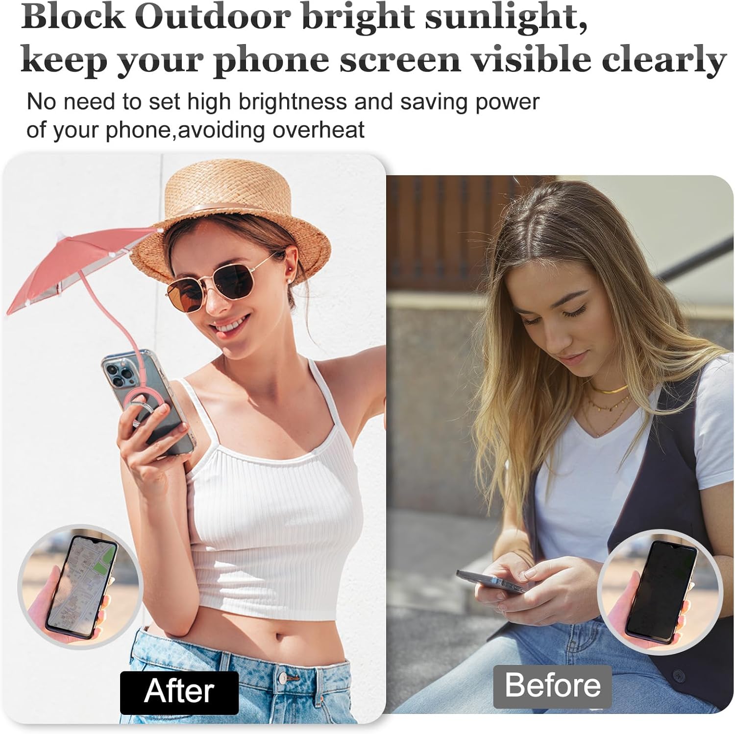 Magnetic Umbrella Phone Stand for Sun Protection,Adjustable Sun Shade Shield for iPhone 16/15/14/13/12 Pro Max,Samsung & Google,Detachable Ring Stand,Heat-Resistant Design,Car Mount Compatible, Pink