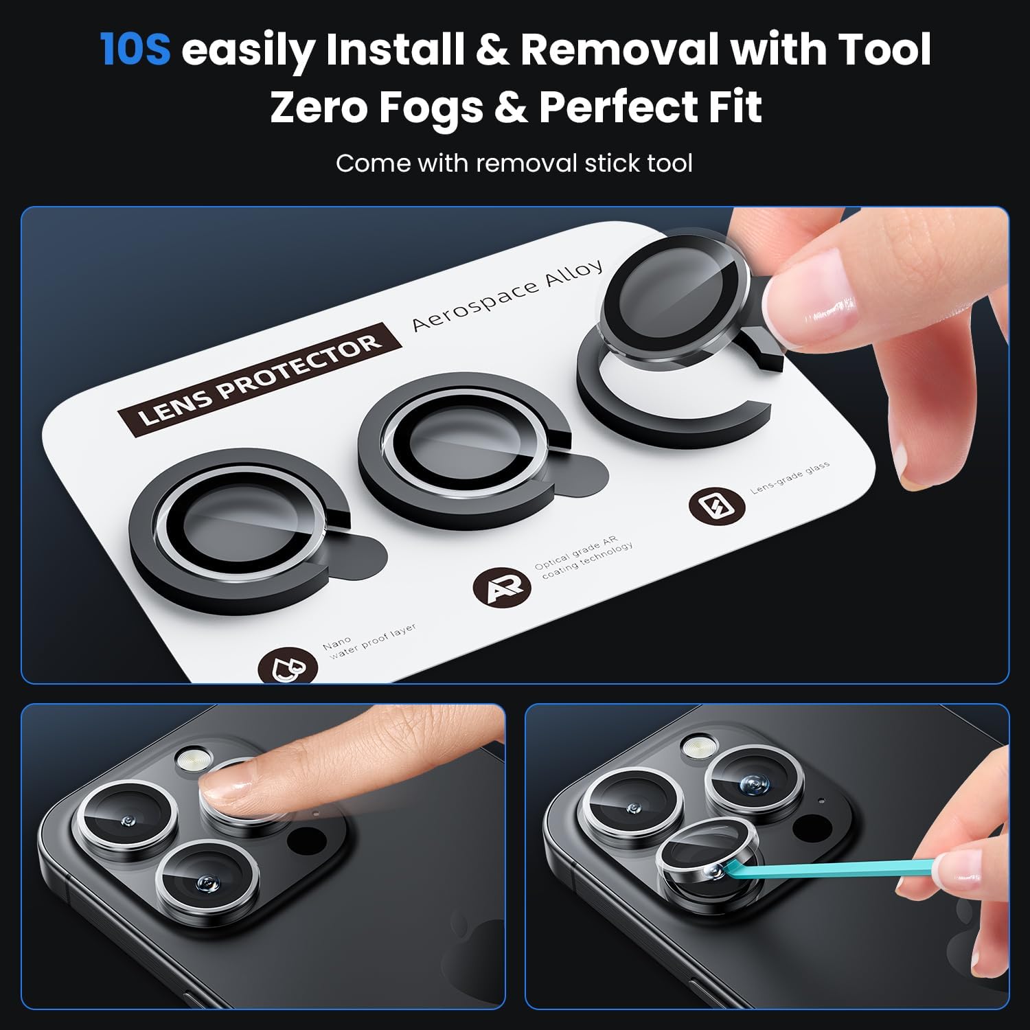- Easy Installation & No Any Fog: 10s easily install and no any bubble nor fogs. The unique design of our lens protector snaps precisely and securely into place. Please lightly press the lens film after installation to make it stick firmly. The package includes 1 removel tool. Kindly scan the code (which above the packing box) to watch the video to learn to install.