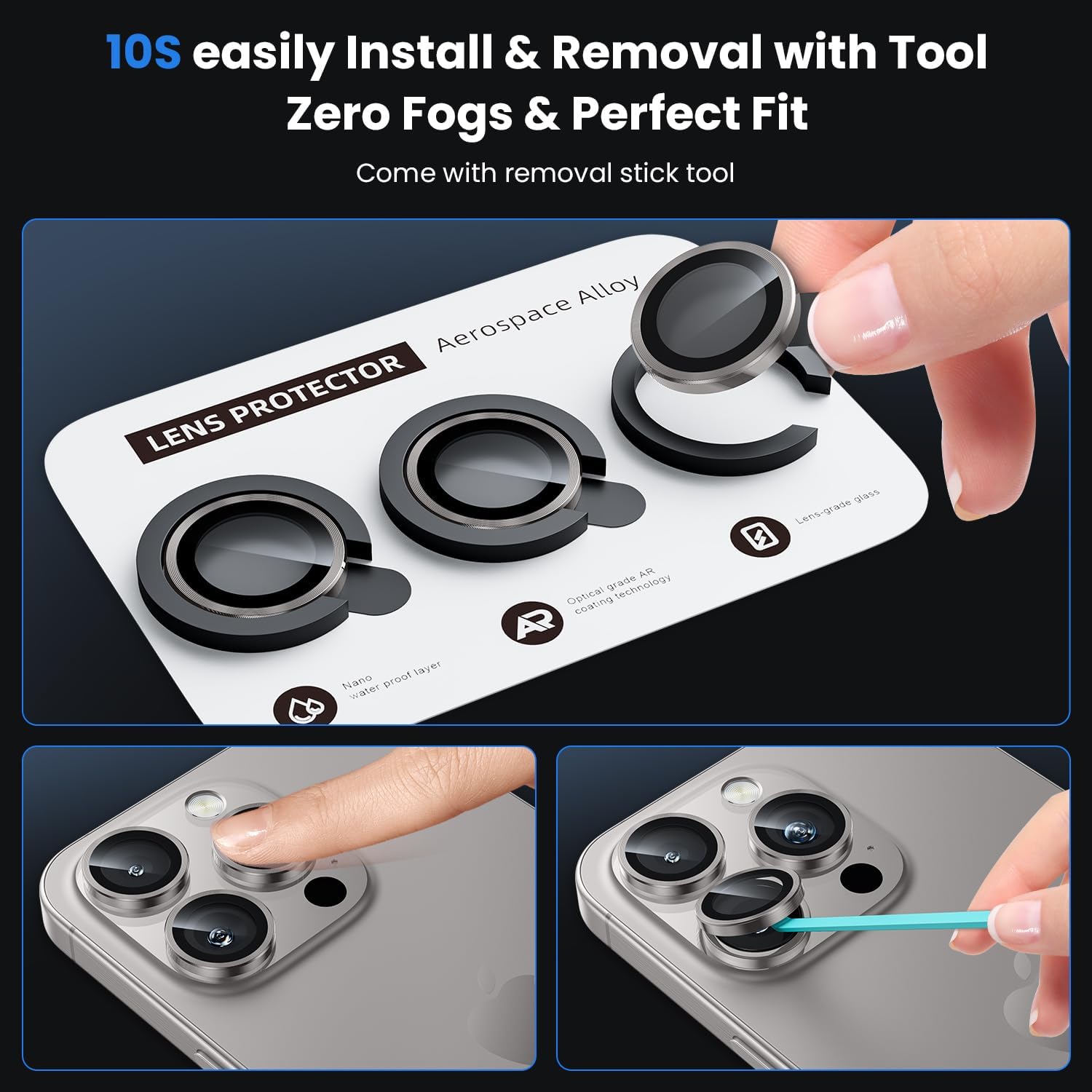 - Easy Installation & No Any Fog: 10s easily install and no any bubble nor fogs. The unique design of our lens protector snaps precisely and securely into place. Please lightly press the lens film after installation to make it stick firmly. The package includes 1 removel tool. Kindly scan the code (which above the packing box) to watch the video to learn to install.